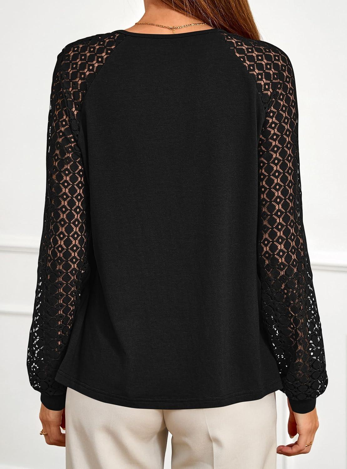 PRETTYGARDEN Womens Long Sleeve Shirts Lace Tops 2025 Fall Fashion Outfits Dressy Casual Blouses Work Clothes(Black)