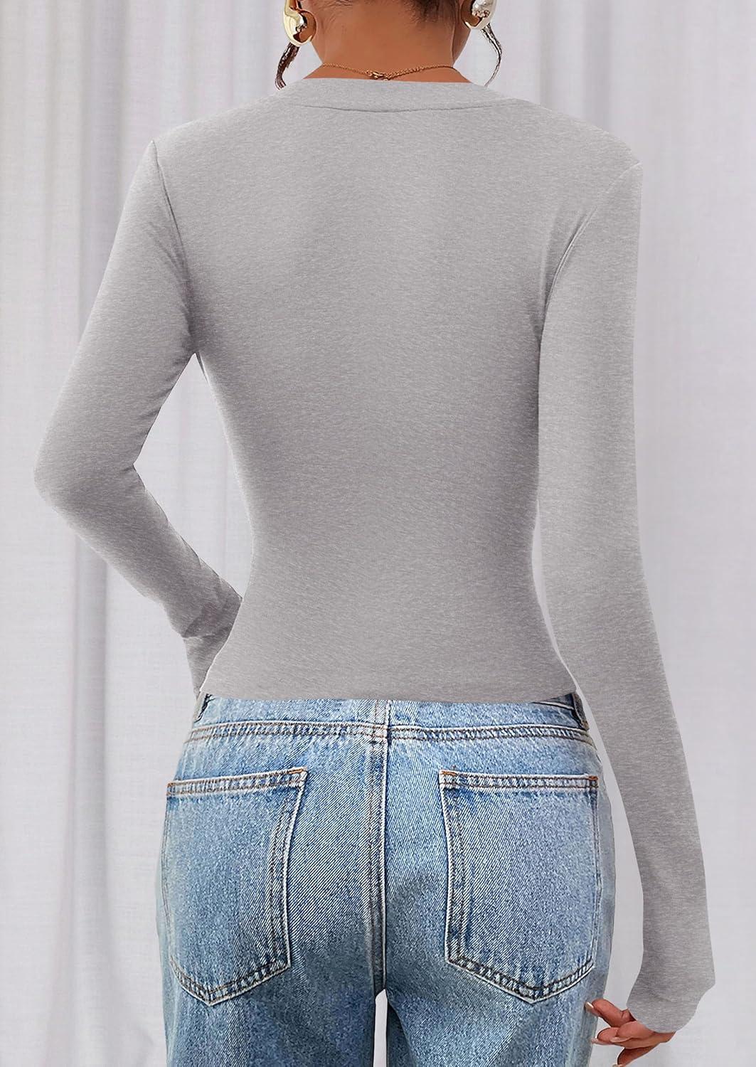 PRETTYGARDEN Womens Long Sleeve T Shirts 2025 Fall Trendy Deep V Neck Slim Fit Basic Crop Tops Casual Going Out Top(Grey)