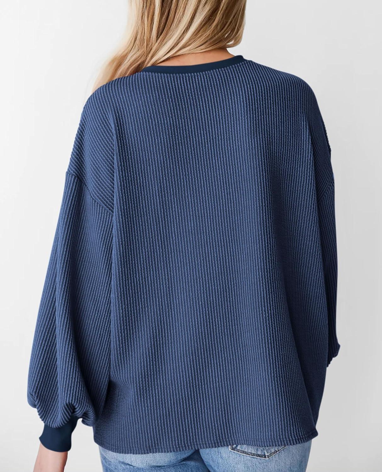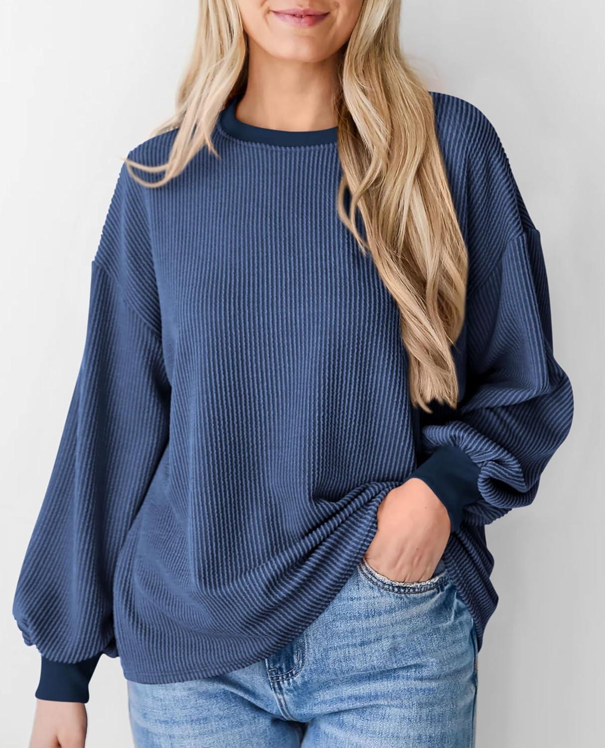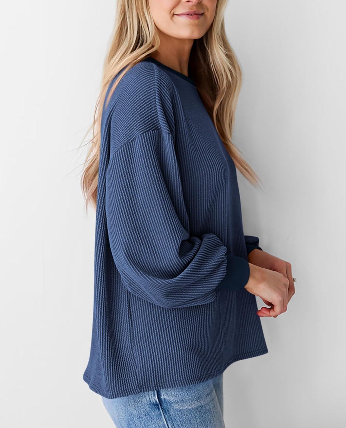 PRETTYGARDEN Womens Long Sleeve Tops 2025 Fall Fashion Shirts Trendy Clothes Casual Loose Crewneck Ribbed Knit Tunic Blouse(Dark Blue)