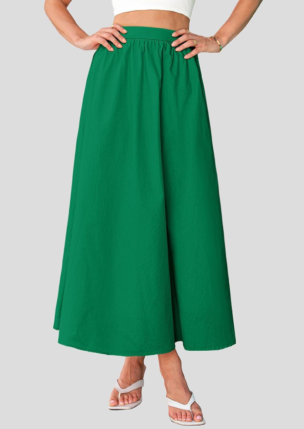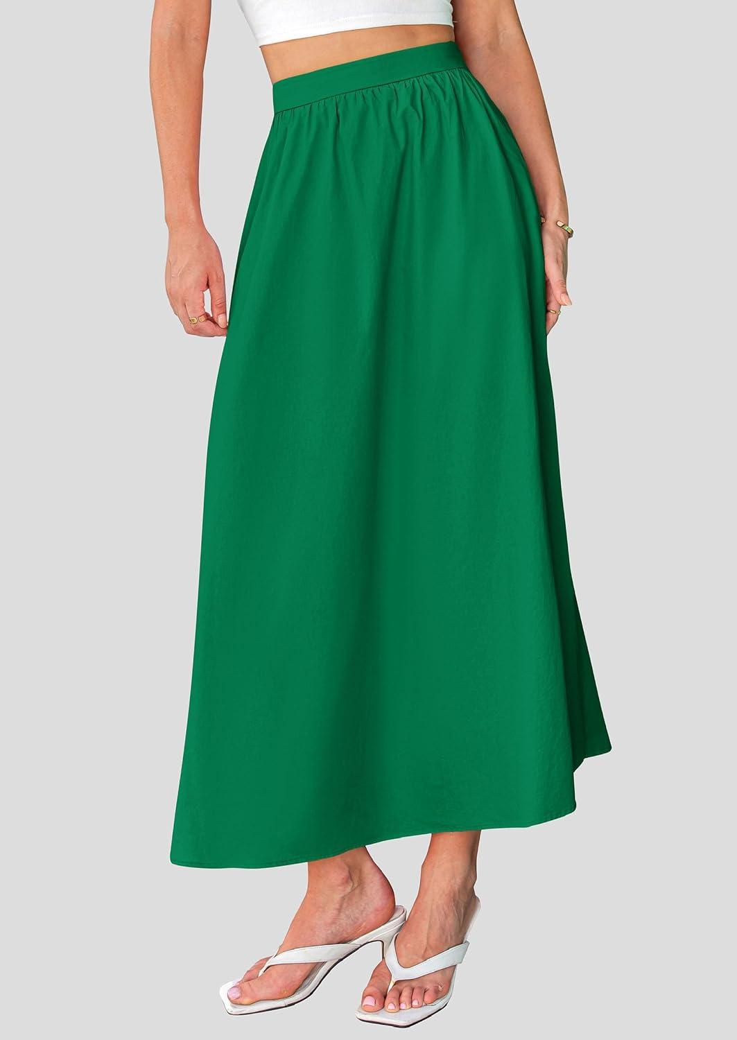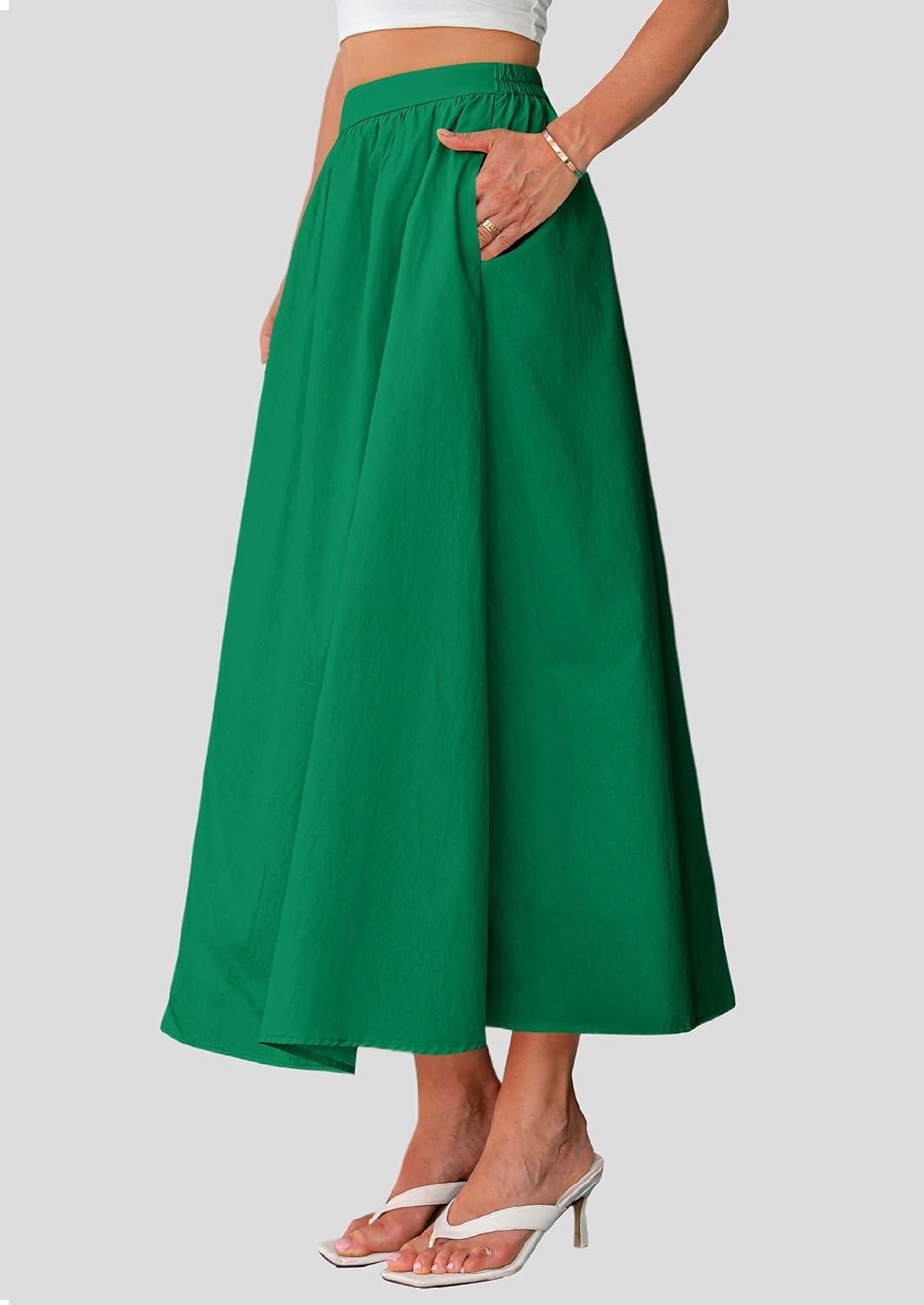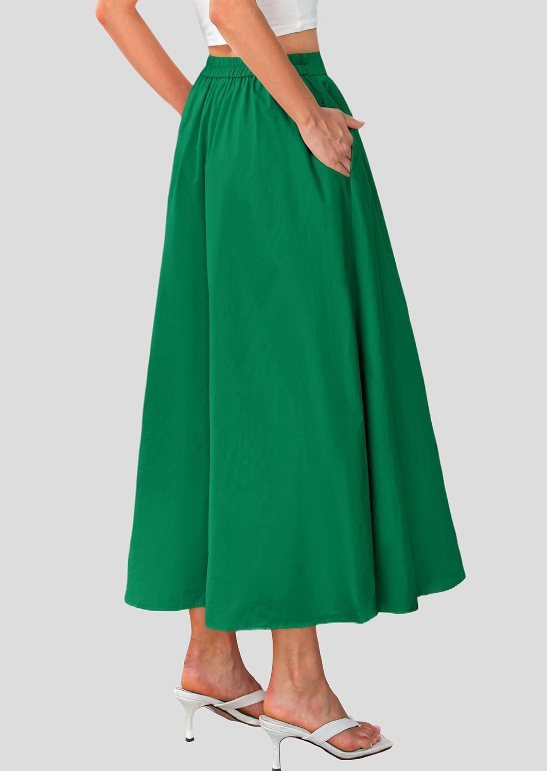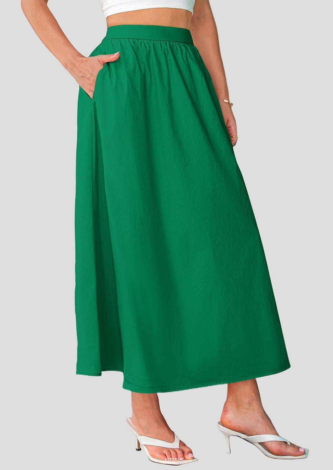 PRETTYGARDEN Women’s Maxi Skirts 2025 Summer Trendy Ruffle High Waisted Casual Long Flowy Skirt with Pockets(Green)