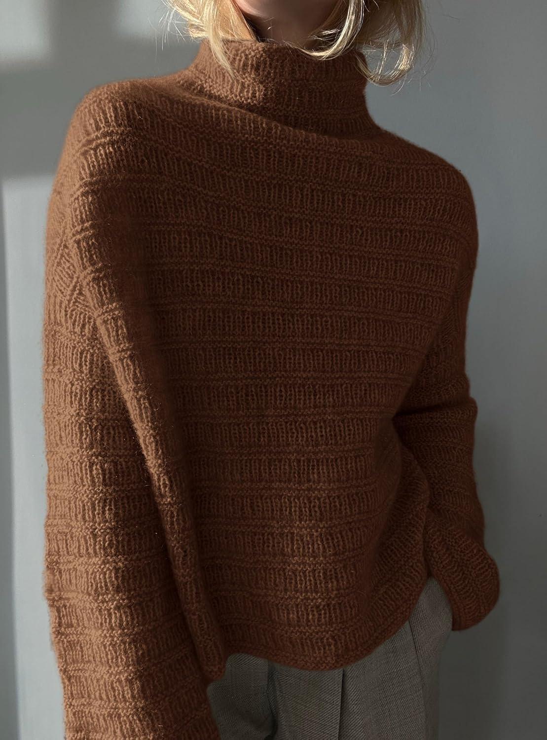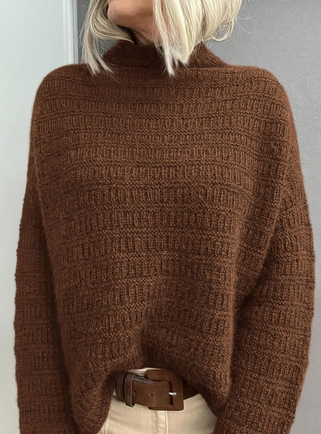 PRETTYGARDEN Womens Mock Neck Oversized Sweaters 2025 Long Sleeve Pullover Fall Sweater Knit Jumper Tops Winter Clothing(Brown)