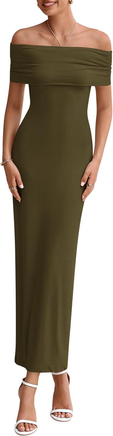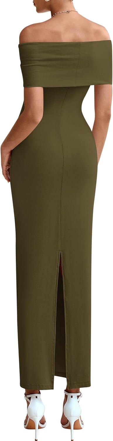 PRETTYGARDEN Women’s Off The Shoulder Maxi Dresses 2025 Summer Formal Elegant Cocktail Party Wedding Guest Long Dress(Army Green)