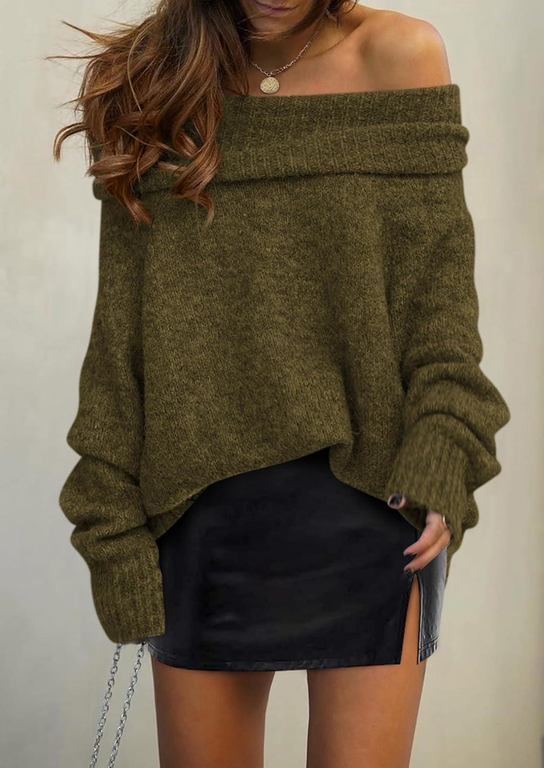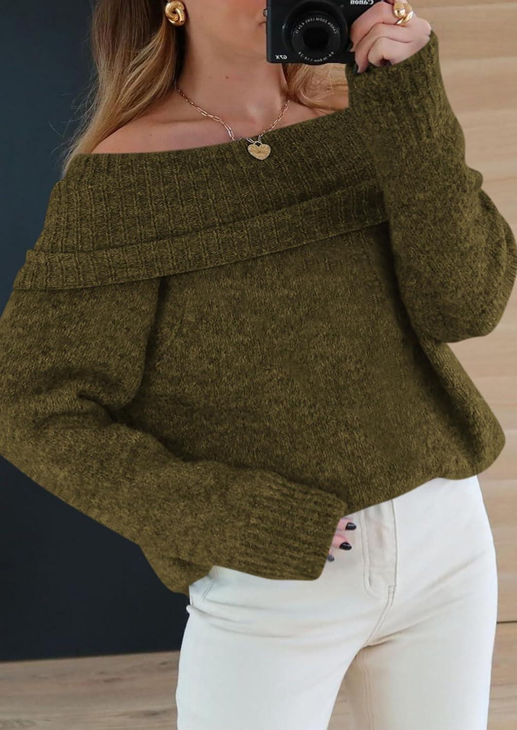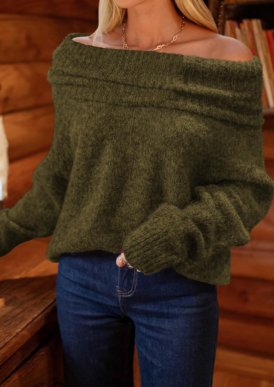 PRETTYGARDEN Women’s Off The Shoulder Sweater Long Sleeve Tops 2025 Fall Loose Knit Pullover Sweaters Winter Clothes(Army Green)
