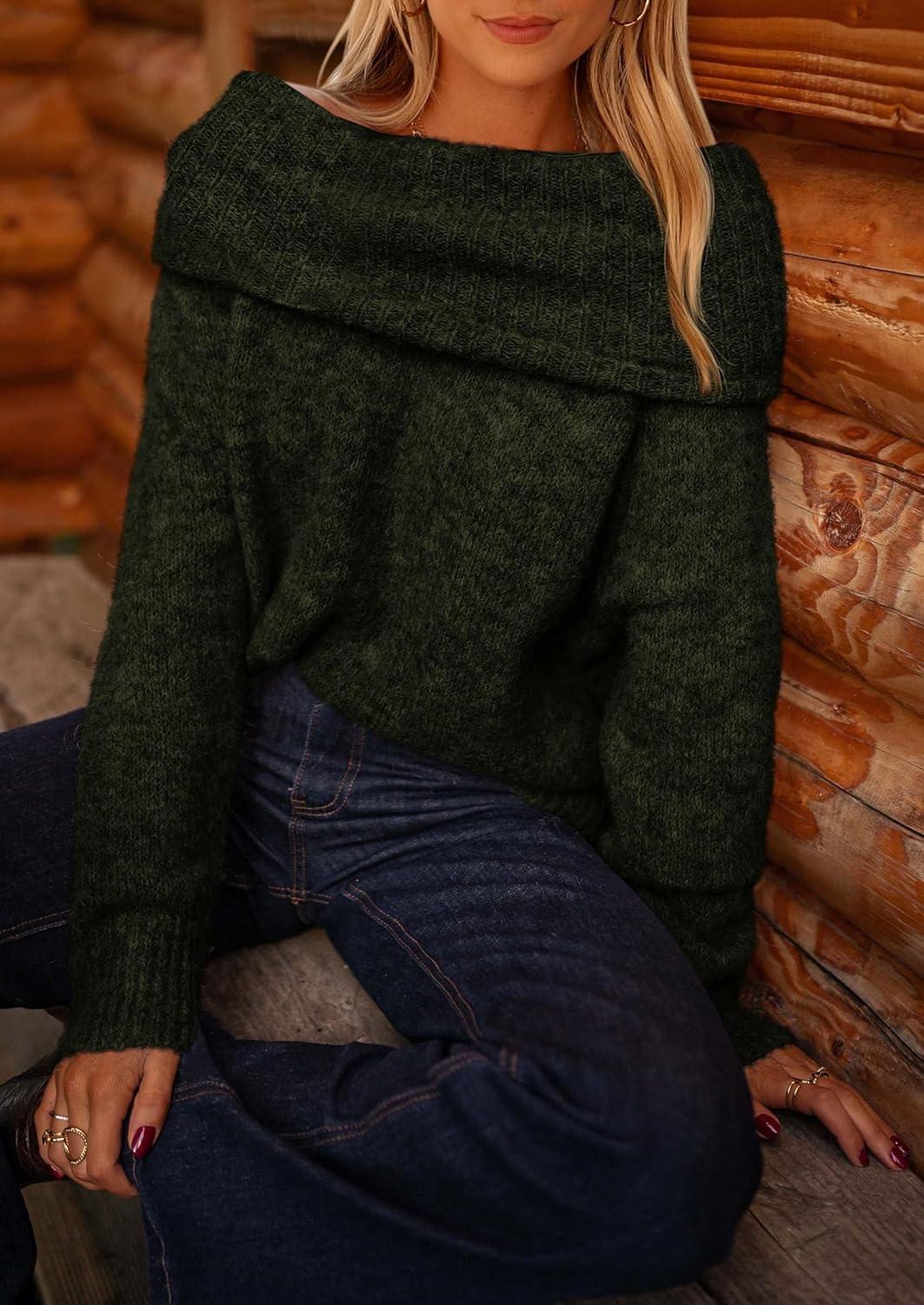 PRETTYGARDEN Women’s Off The Shoulder Sweater Long Sleeve Tops 2025 Fall Loose Knit Pullover Sweaters Winter Clothes(Dark Green)