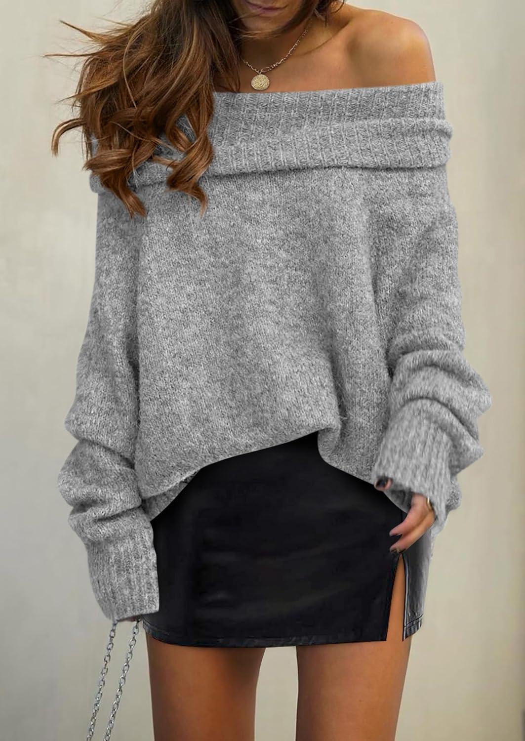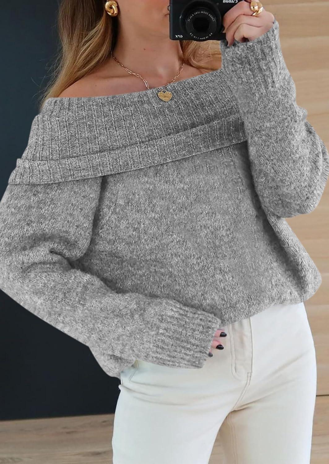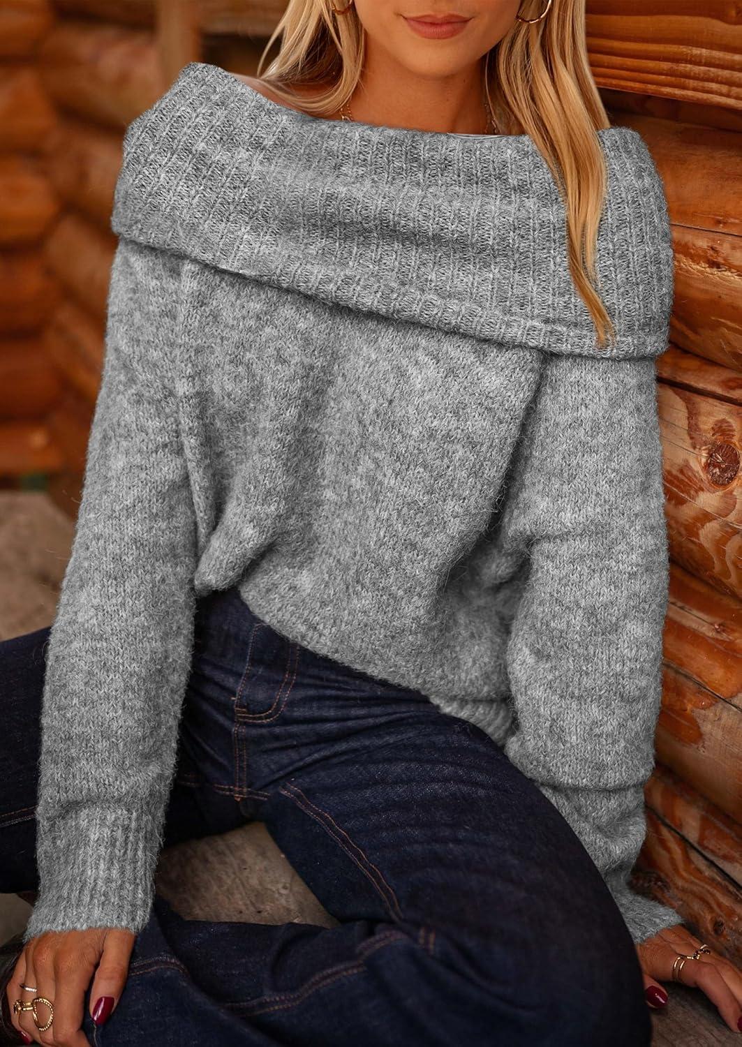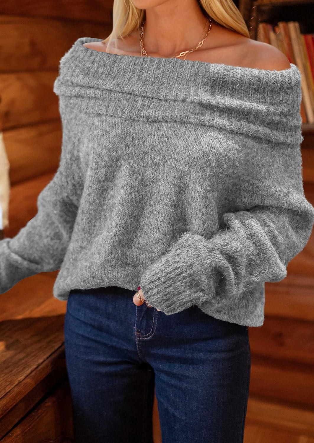 PRETTYGARDEN Women’s Off The Shoulder Sweater Long Sleeve Tops 2025 Fall Loose Knit Pullover Sweaters Winter Clothes(Grey)