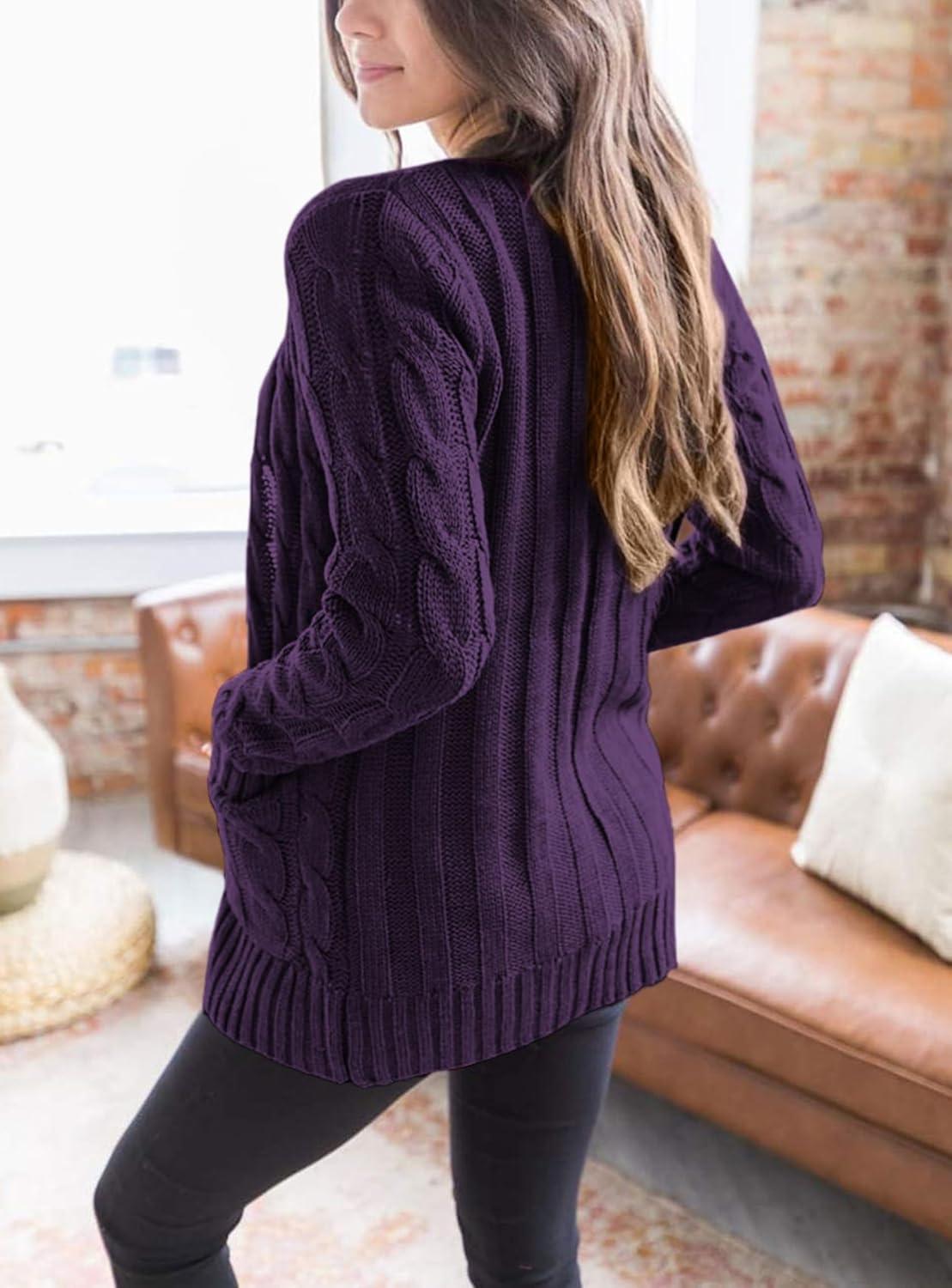 PRETTYGARDEN Women's Open Front Cardigan Sweaters Fall Fashion Button Down Cable Knit Chunky Winter Clothing Outerwear Coats(Dark Purple)