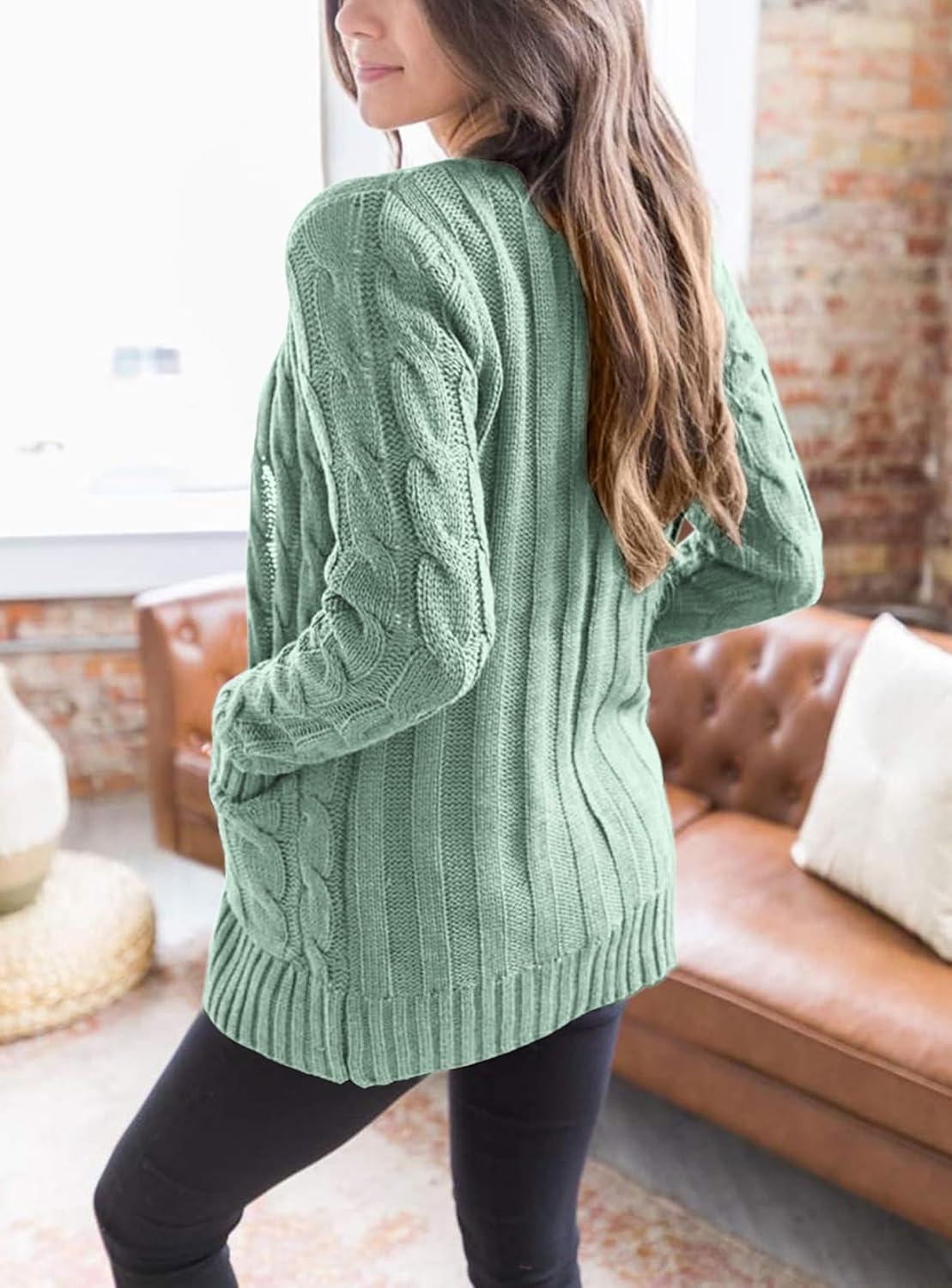 PRETTYGARDEN Women’s Open Front Cardigan Sweaters Fall Fashion Button Down Cable Knit Chunky Winter Clothing Outerwear Coats(Green)