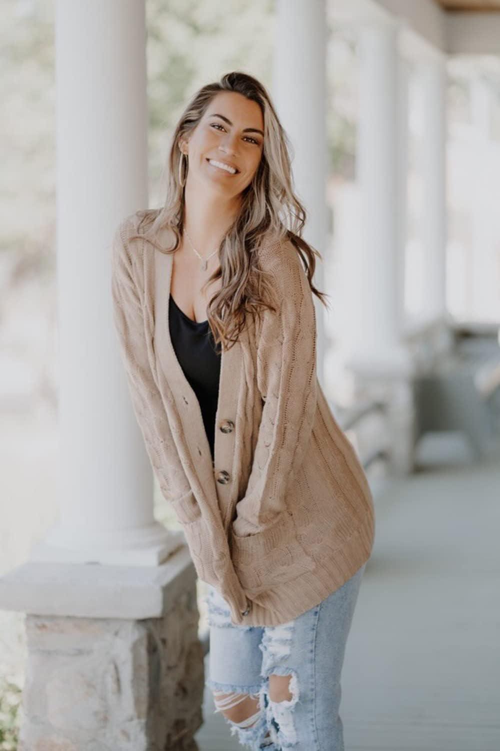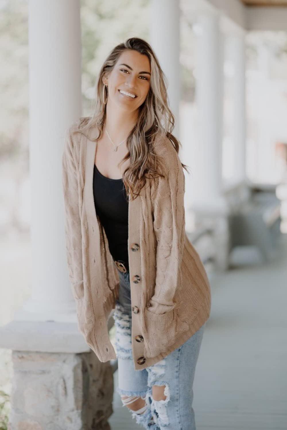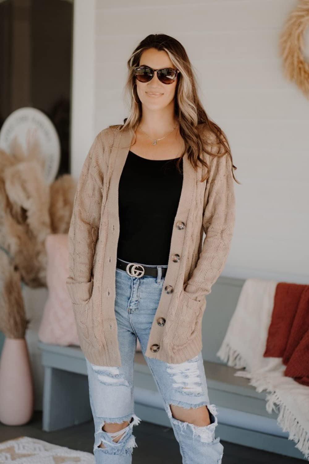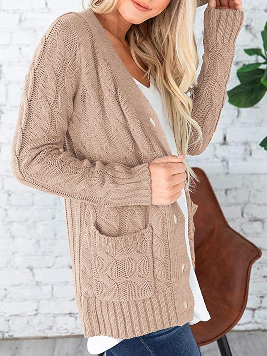 PRETTYGARDEN Women's Open Front Cardigan Sweaters Fall Fashion Button Down Cable Knit Chunky Winter Clothing Outerwear Coats(Tan)