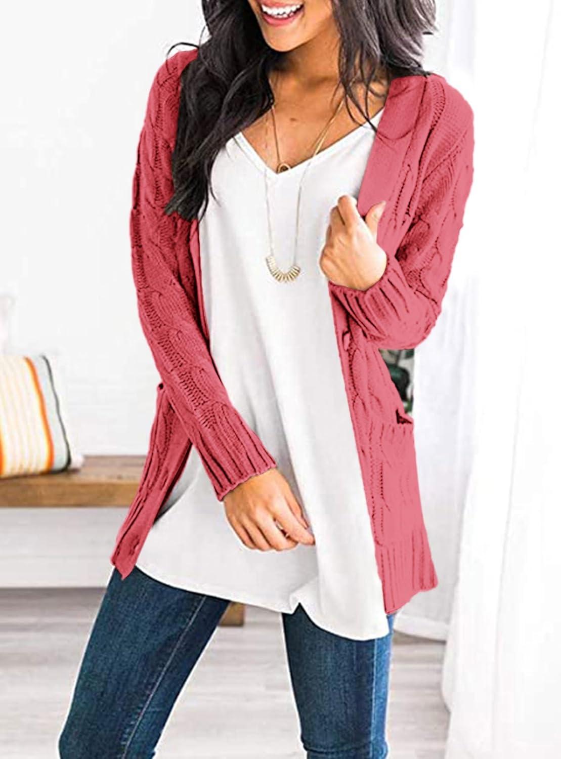 PRETTYGARDEN Women's Open Front Cardigan Sweaters Fall Fashion Button Down Cable Knit Chunky Winter Clothing Outerwear Coats(Vermilion)