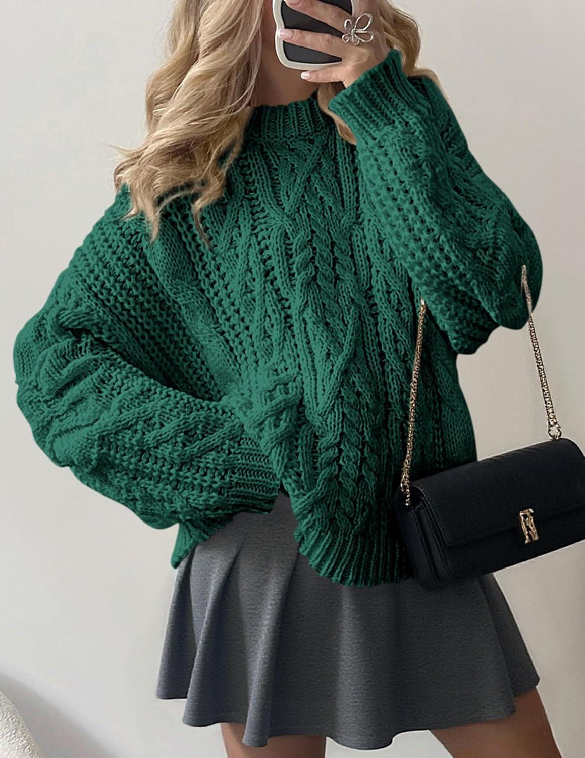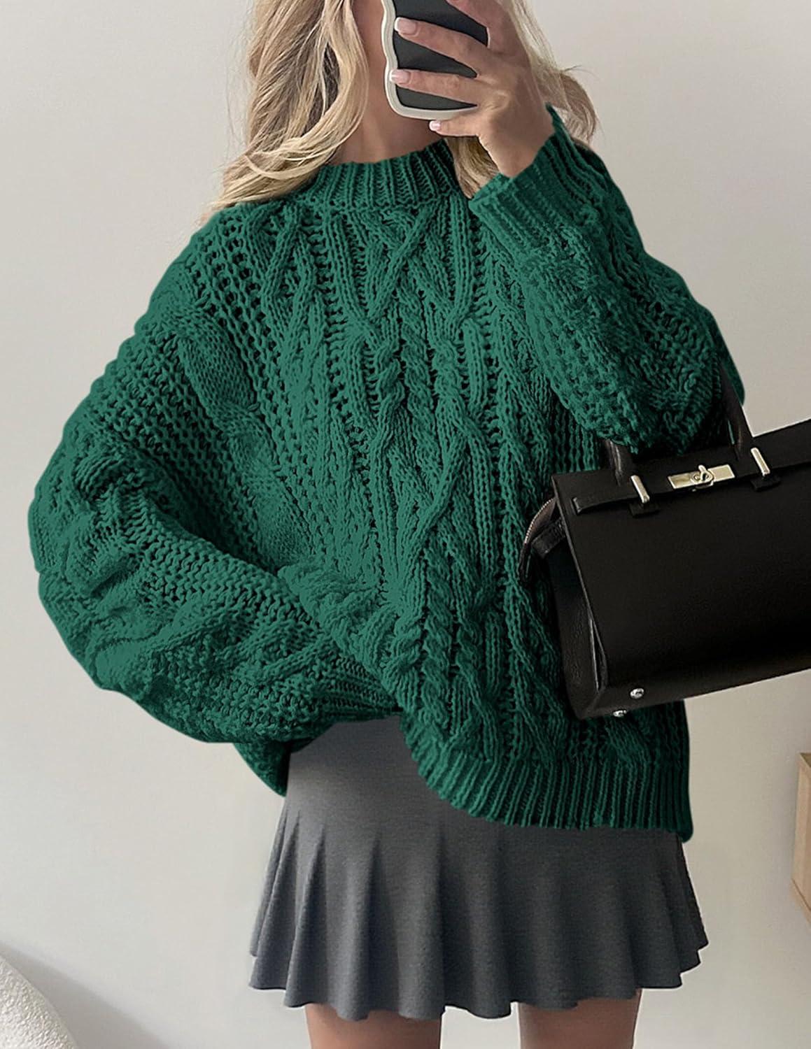 PRETTYGARDEN Women’s Oversized Fall Sweaters 2025 Casual Long Sleeve Crewneck Chunky Cable Knit Pullover Tops Winter Clothes(Green)