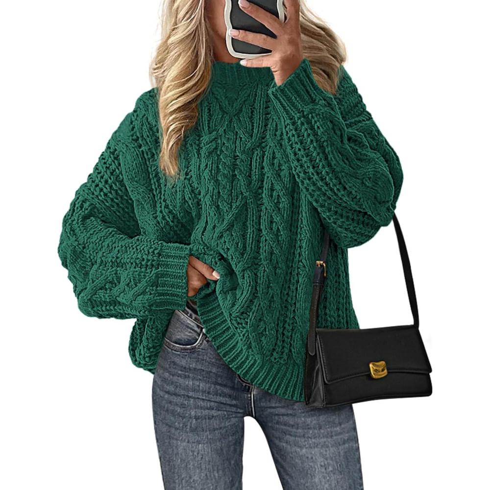 PRETTYGARDEN Women's Oversized Fall Sweaters 2025 Casual Long Sleeve Crewneck Chunky Cable Knit Pullover Tops Winter Clothes(Green)