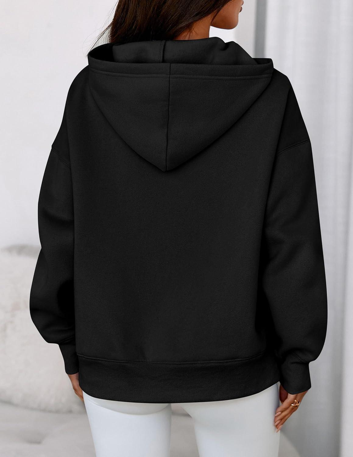 PRETTYGARDEN Womens Oversized Hoodies Fleece Sweatshirts Fall Fashion 2025 Long Sleeve Pullover Tops Y2k Winter Clothes(Black)