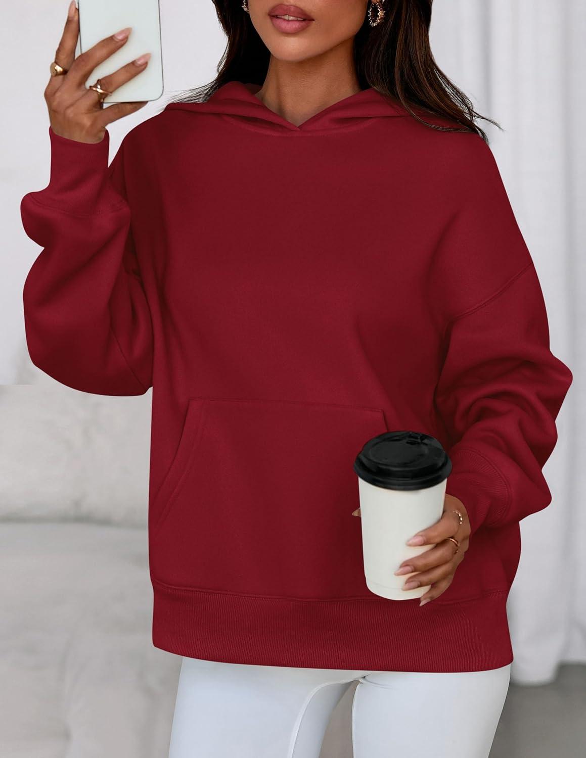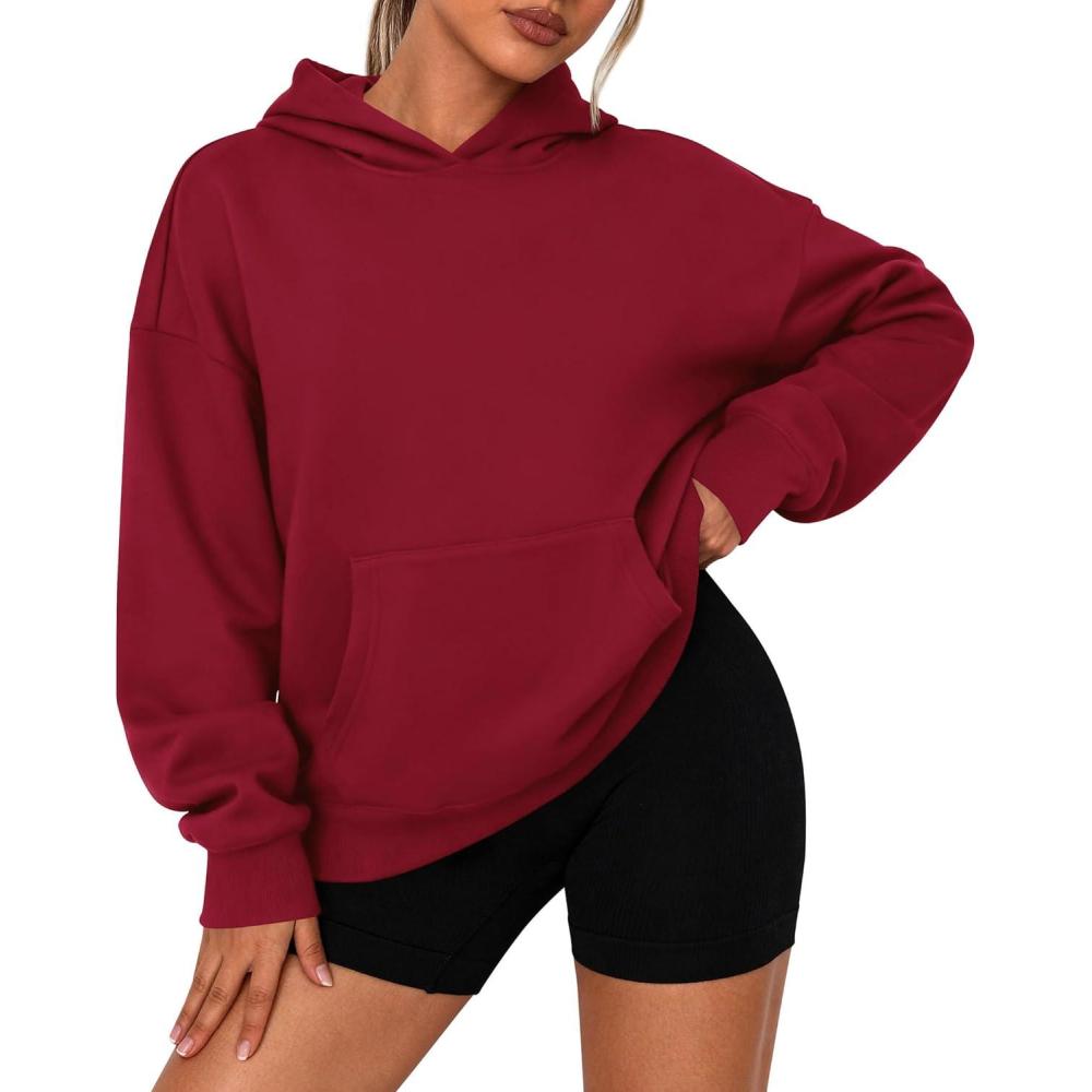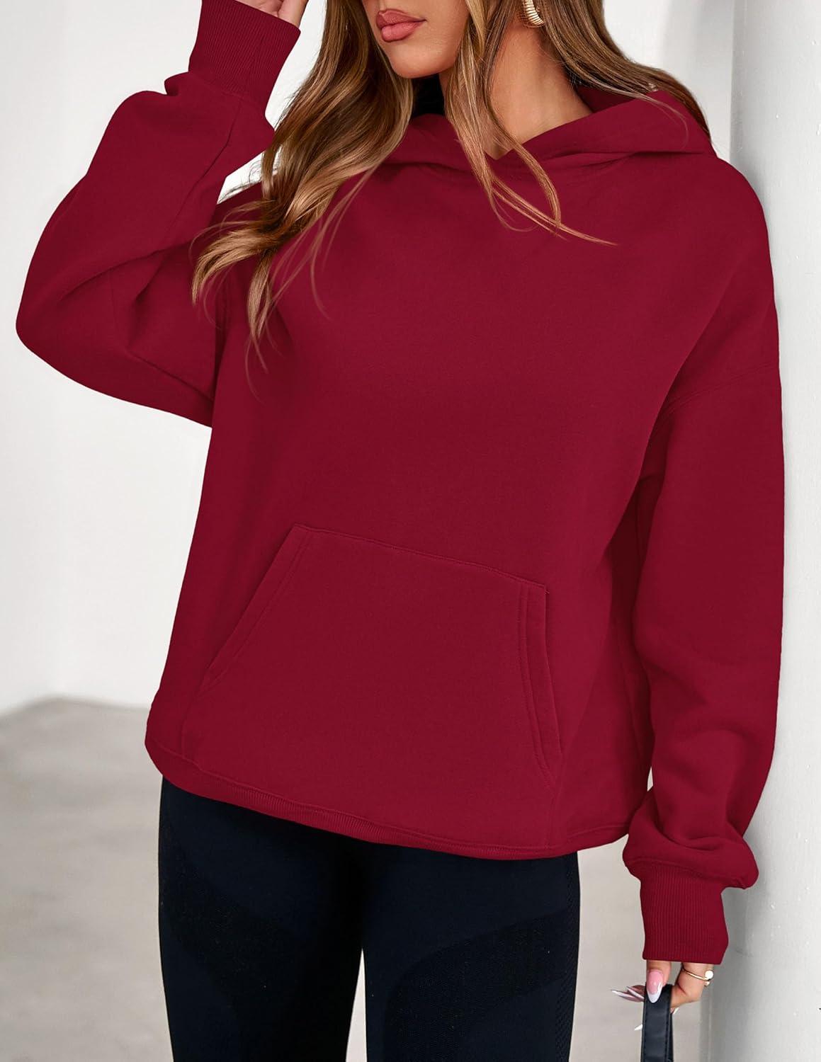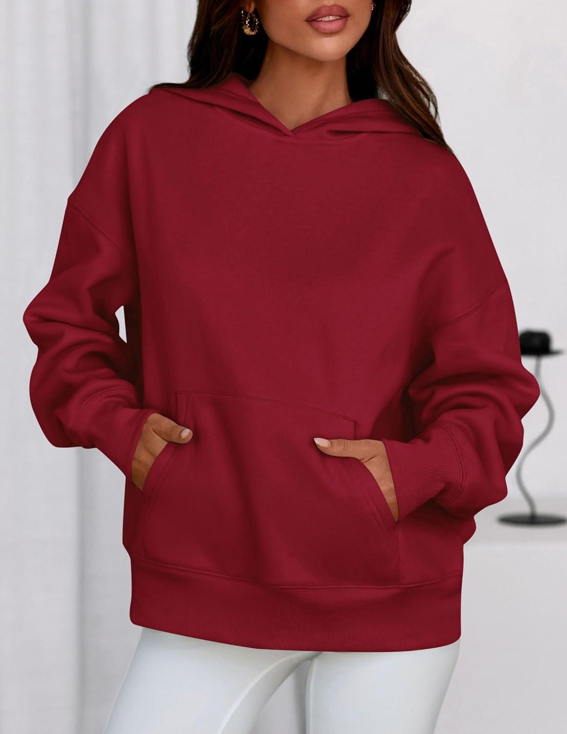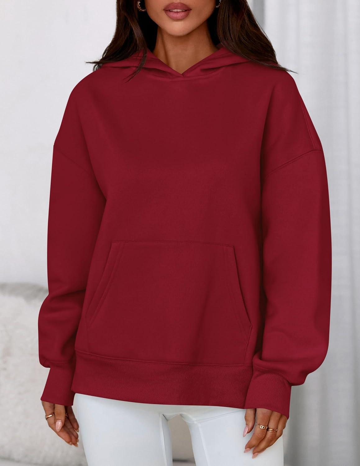 PRETTYGARDEN Womens Oversized Hoodies Fleece Sweatshirts Fall Fashion 2025 Long Sleeve Pullover Tops Y2k Winter Clothes(Burgundy)