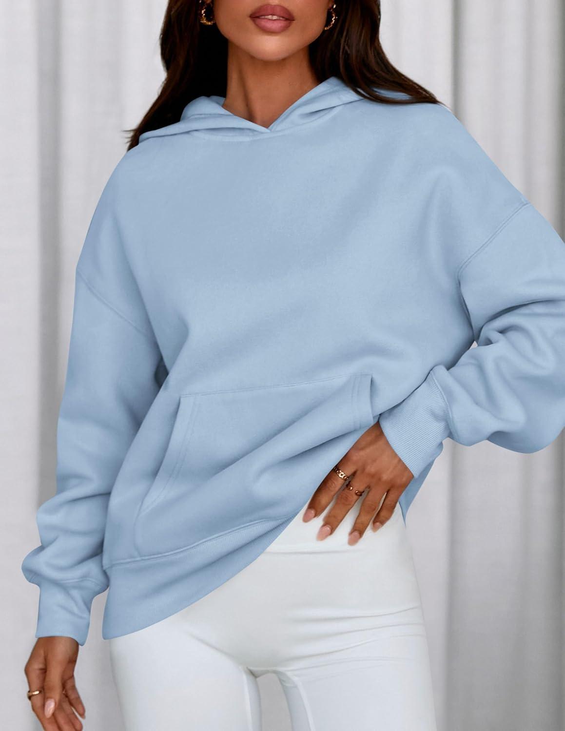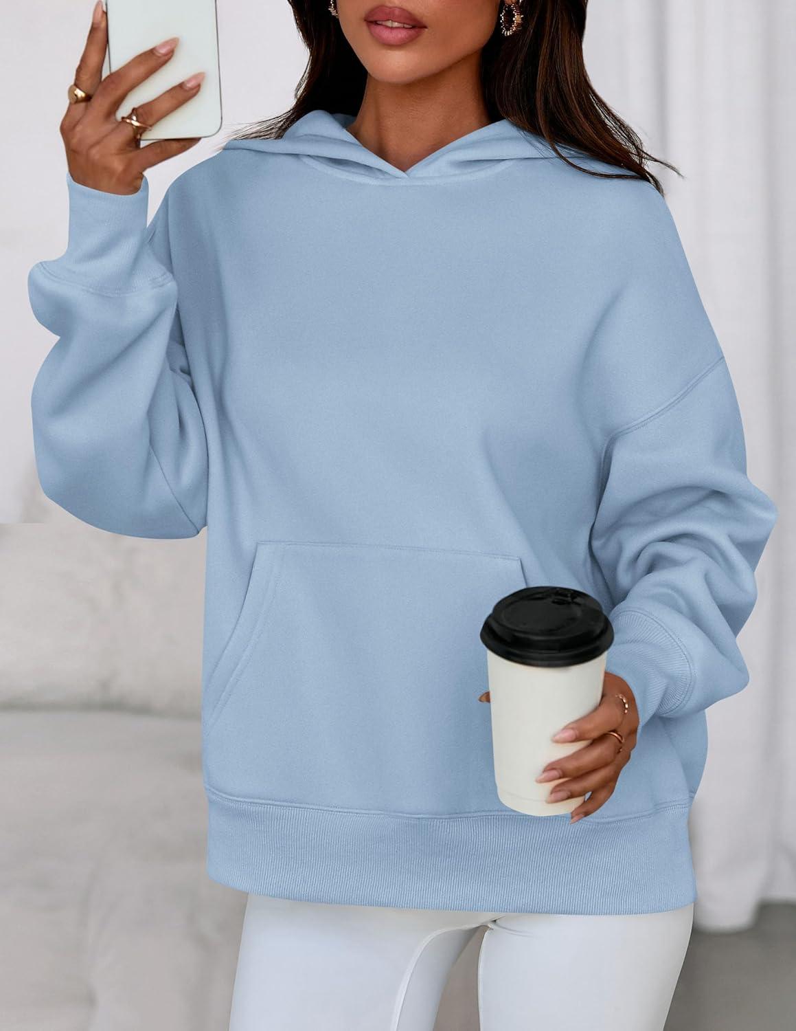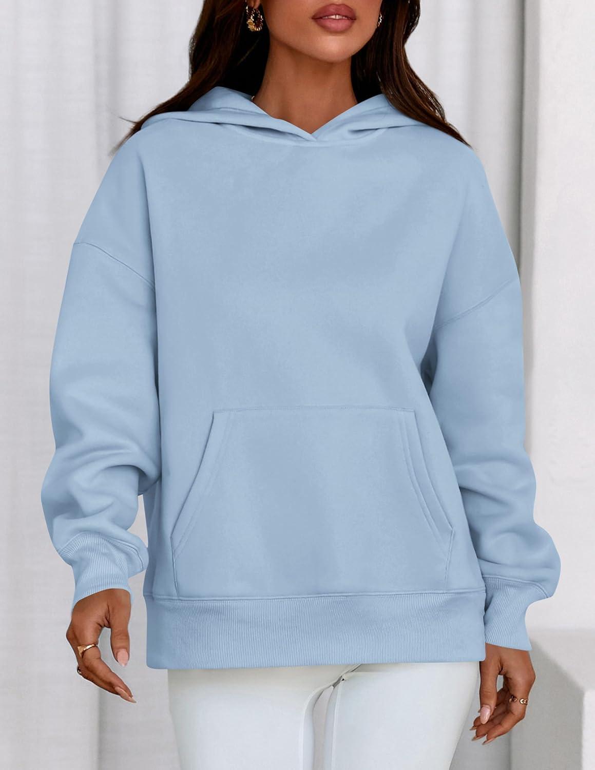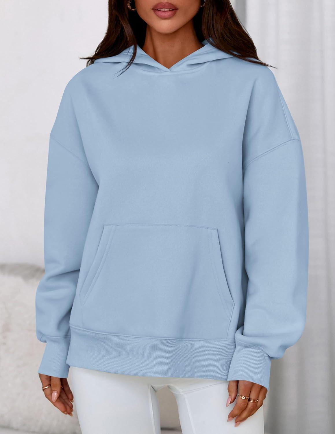 PRETTYGARDEN Womens Oversized Hoodies Fleece Sweatshirts Fall Fashion 2025 Long Sleeve Pullover Tops Y2k Winter Clothes(Light Blue)