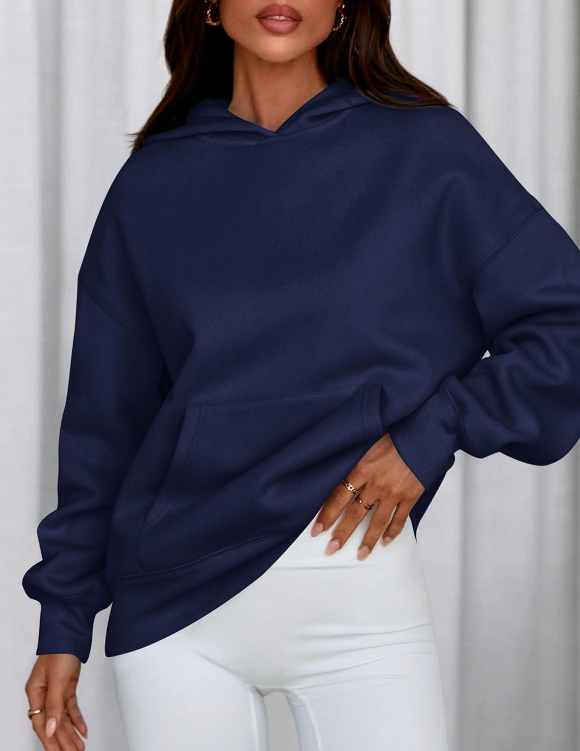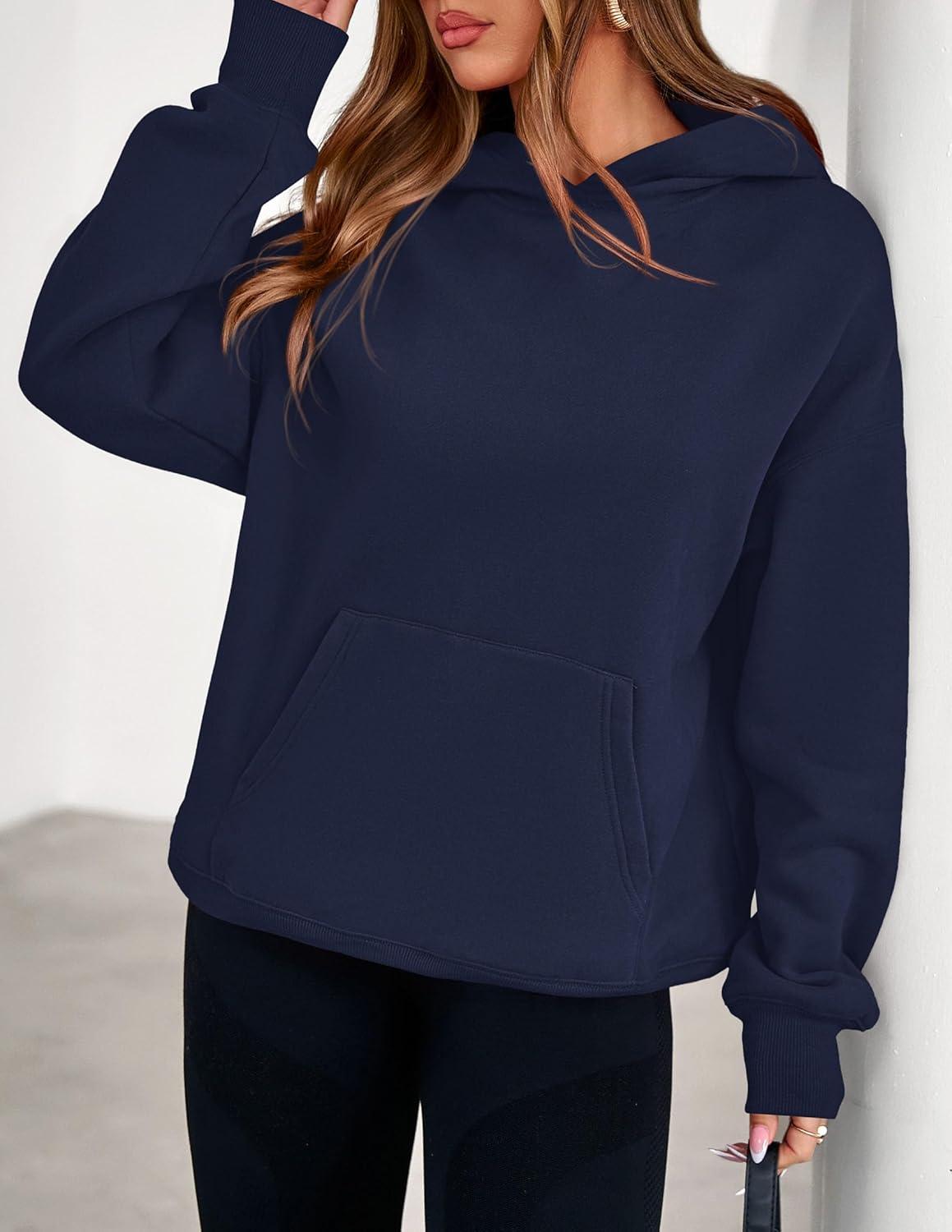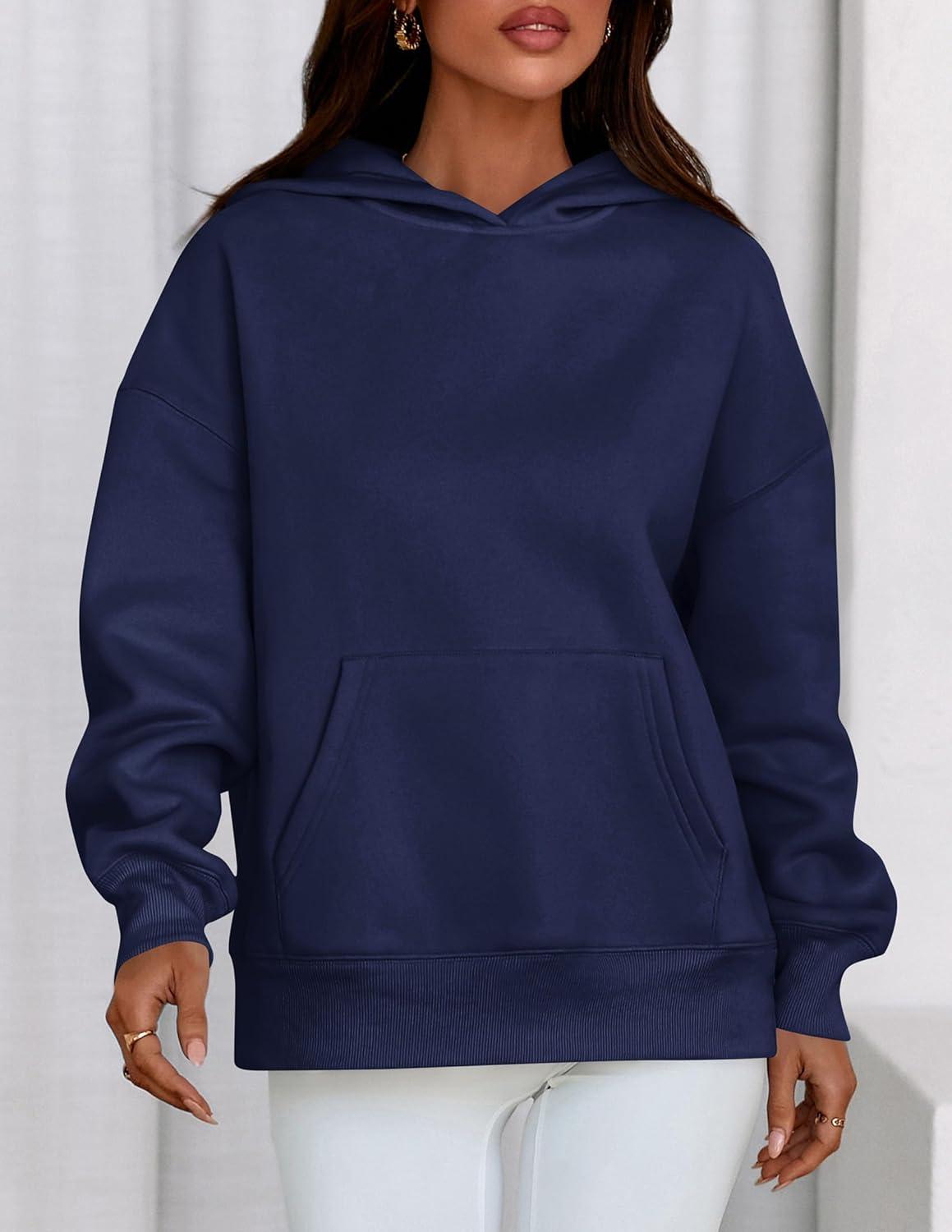 PRETTYGARDEN Womens Oversized Hoodies Fleece Sweatshirts Fall Fashion 2025 Long Sleeve Pullover Tops Y2k Winter Clothes(Navy Blue)