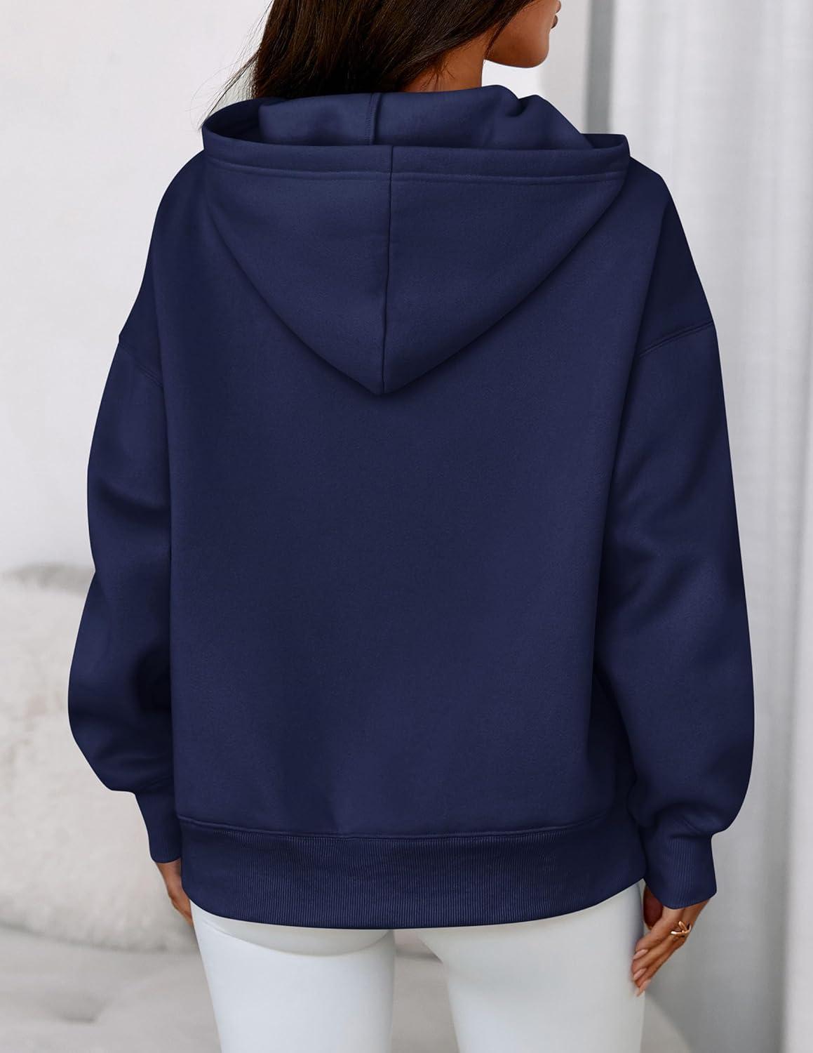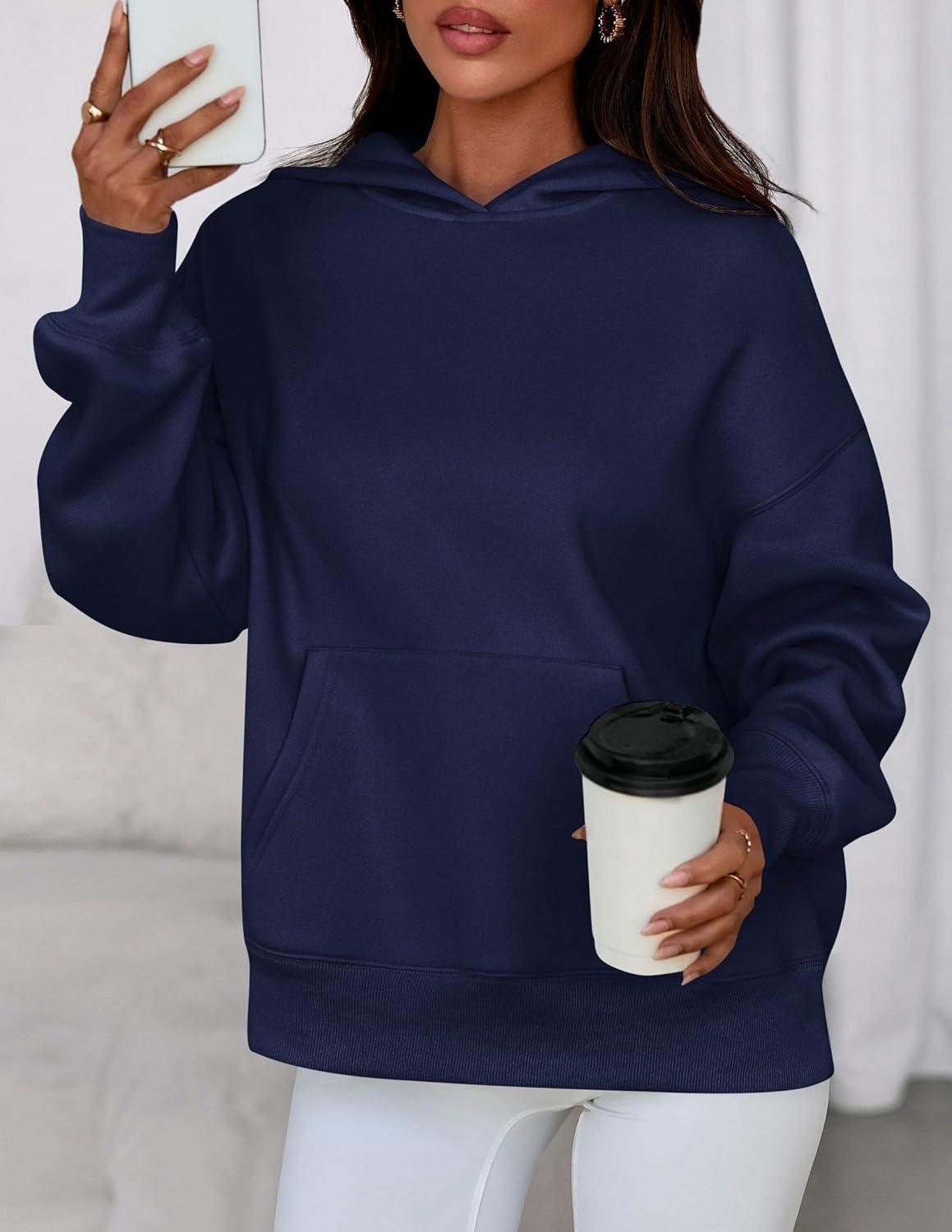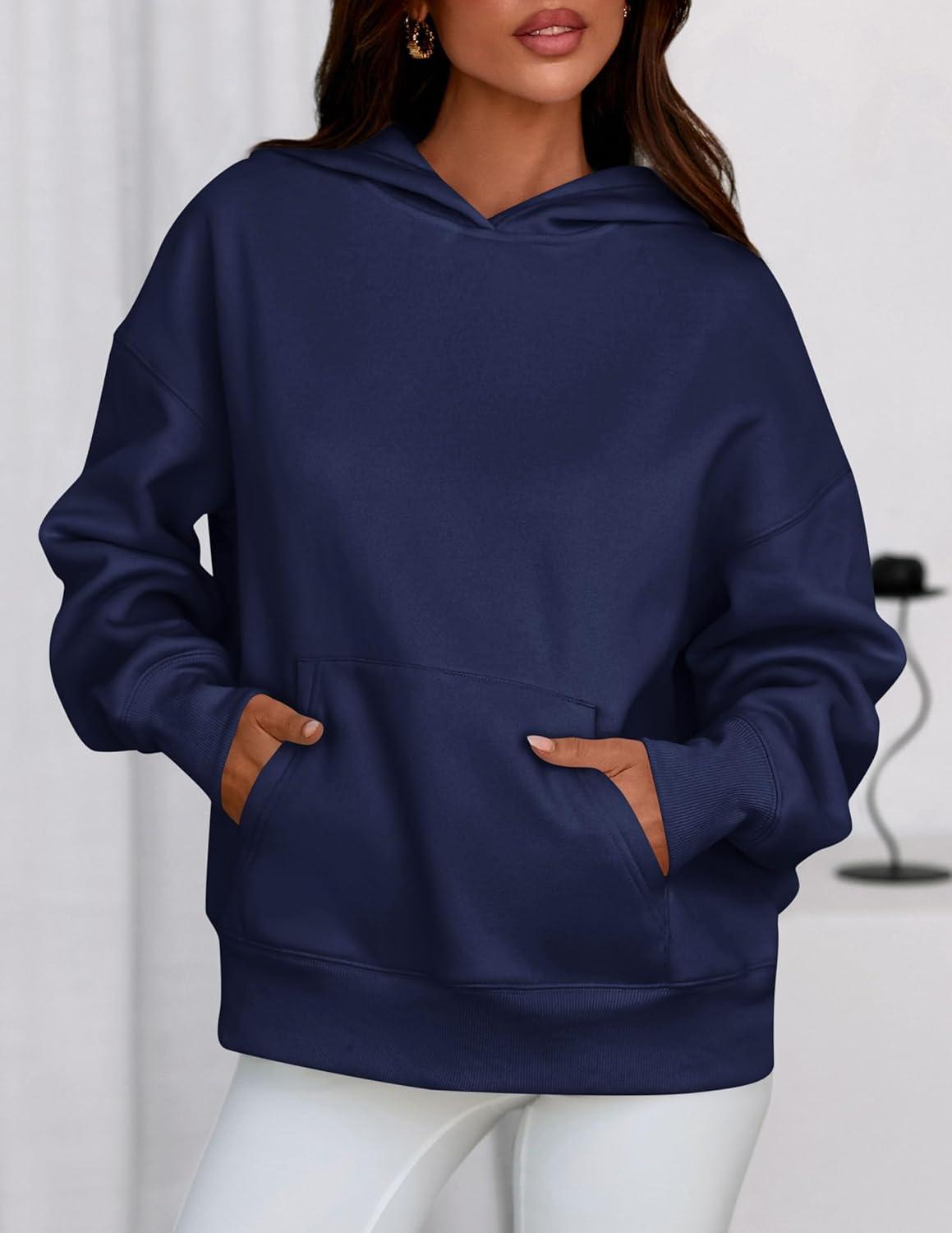 PRETTYGARDEN Womens Oversized Hoodies Fleece Sweatshirts Fall Fashion 2025 Long Sleeve Pullover Tops Y2k Winter Clothes(Navy Blue)