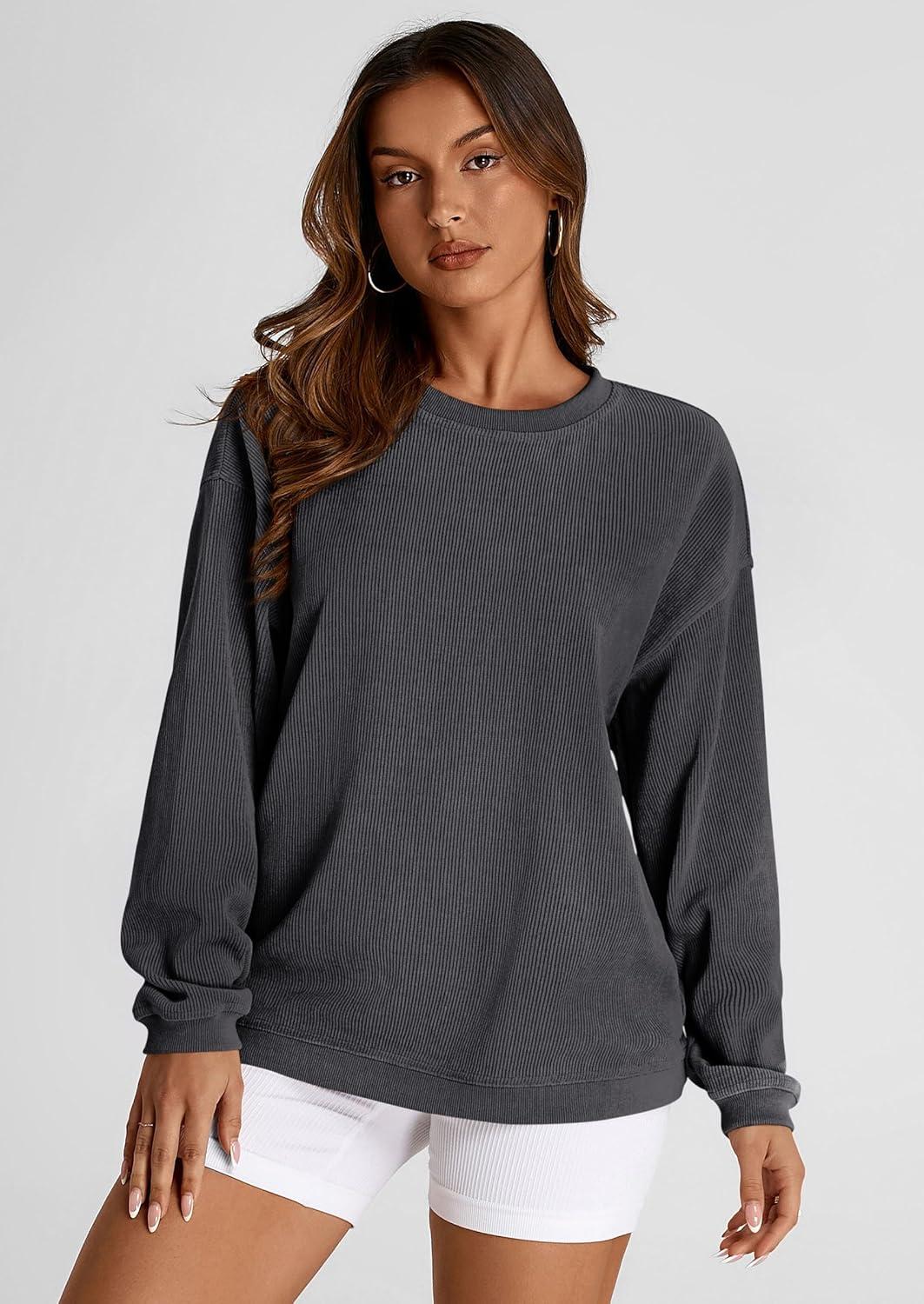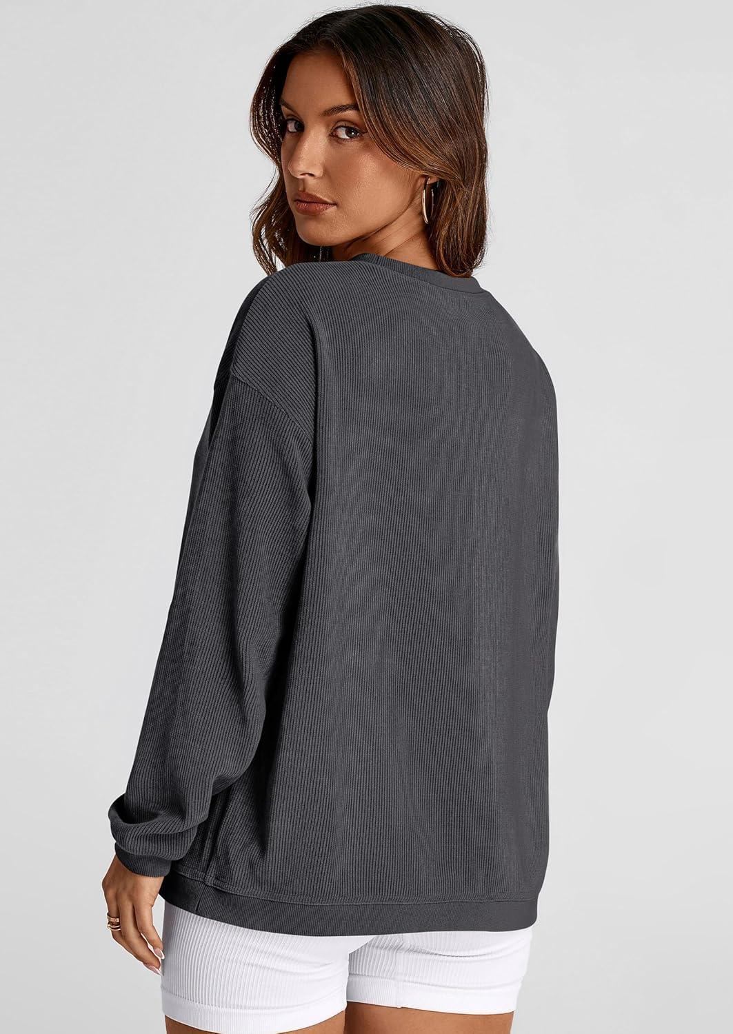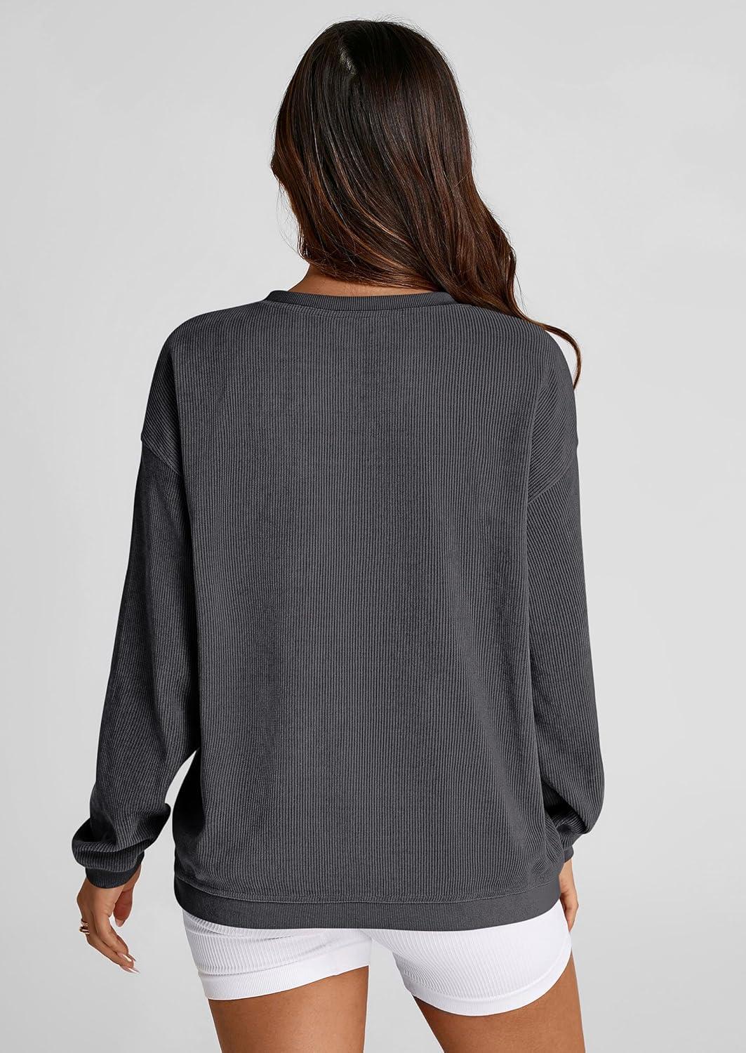 PRETTYGARDEN Women's Oversized Sweatshirt 2025 Fall Fashion Clothes Ribbed Corduroy Long Sleeve Going Out Pullover Tops(Dark Grey)