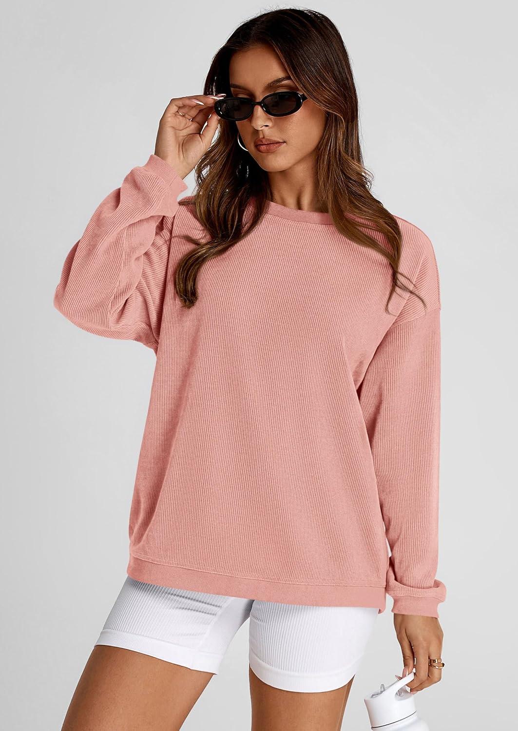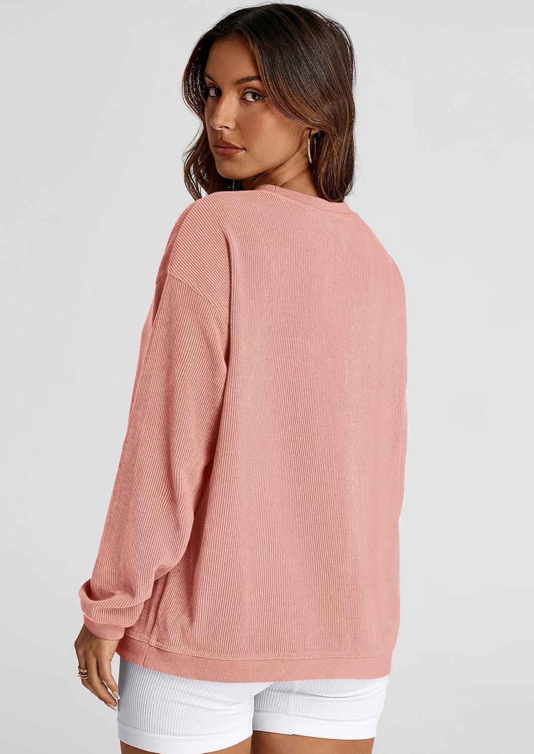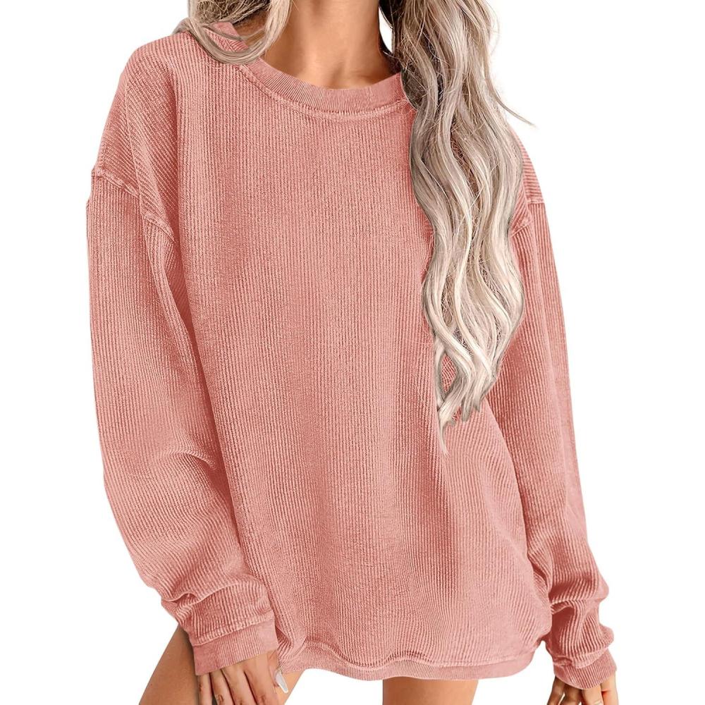 PRETTYGARDEN Women's Oversized Sweatshirt 2025 Fall Fashion Clothes Ribbed Corduroy Long Sleeve Going Out Pullover Tops(Pink)
