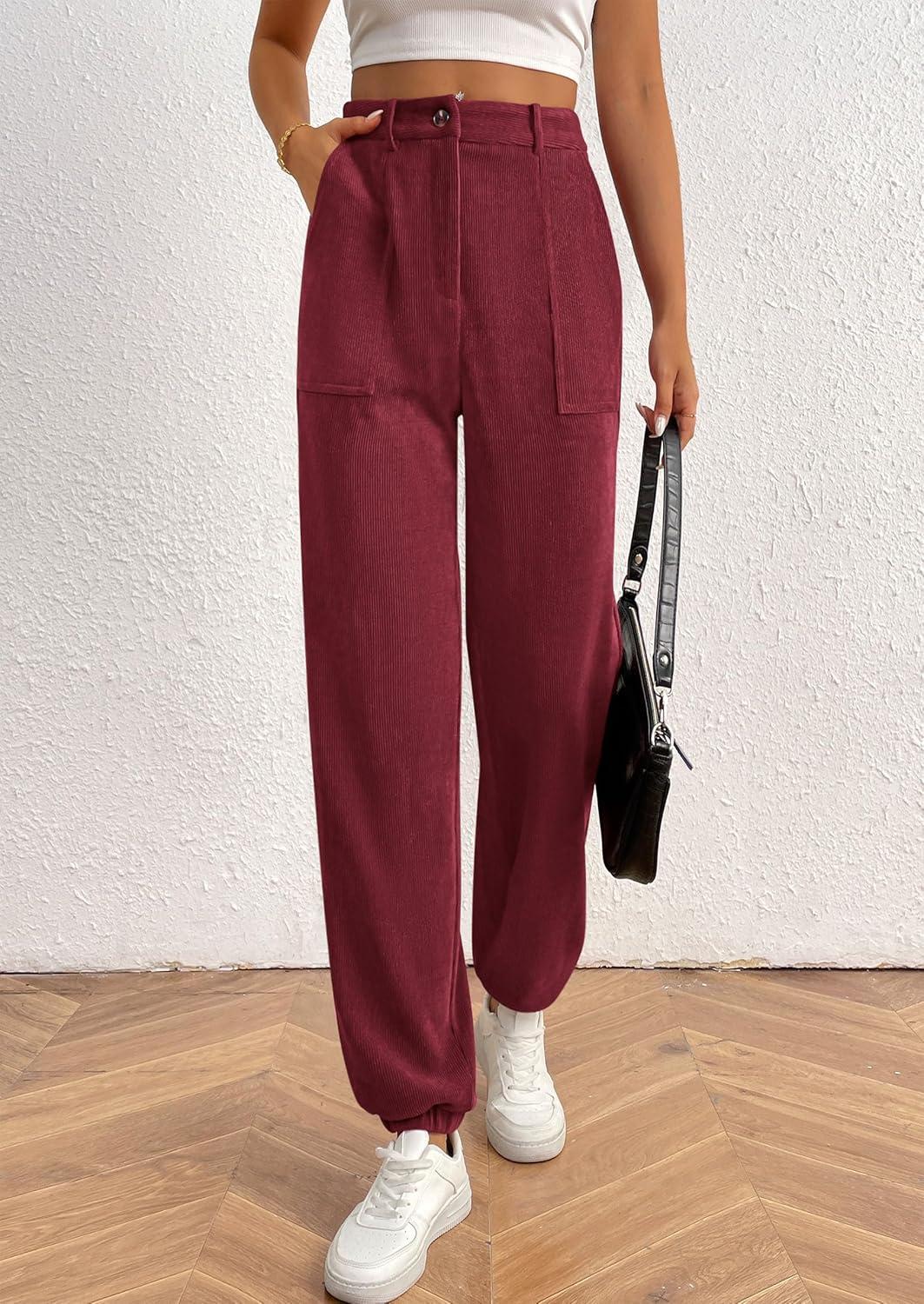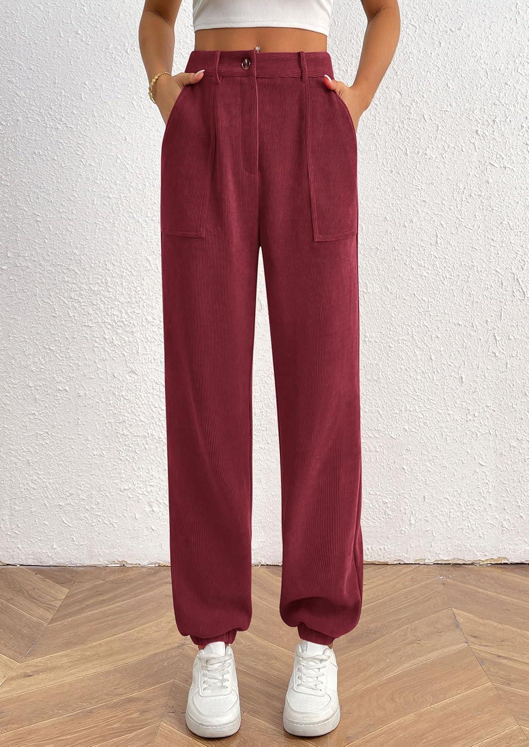 PRETTYGARDEN Women's Pants Dressy Casual 2025 Fall Elastic High Waisted Work Office Corduroy Trouser Slacks with Pockets(Wine Red)
