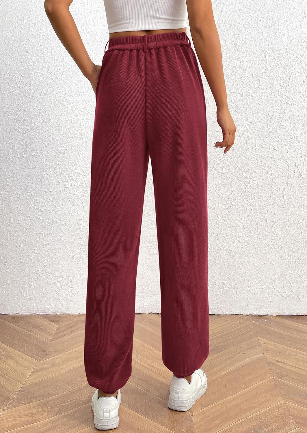 imagePRETTYGARDEN Womens Pants Dressy Casual 2025 Fall Elastic High Waisted Work Office Corduroy Trouser Slacks with PocketsWine Red