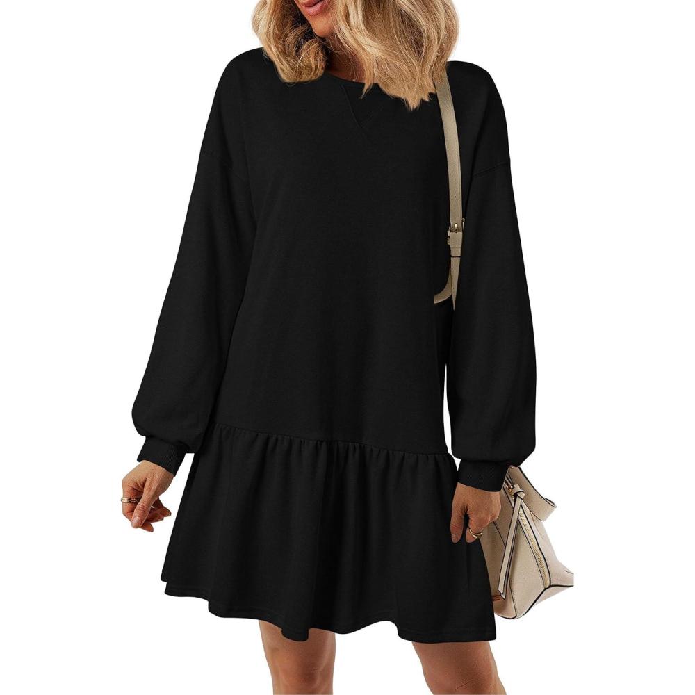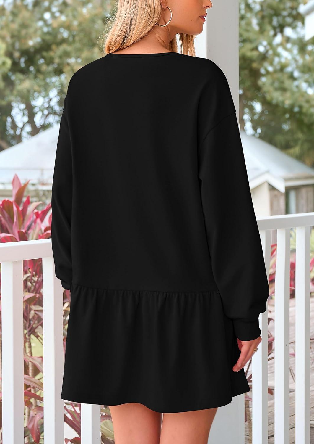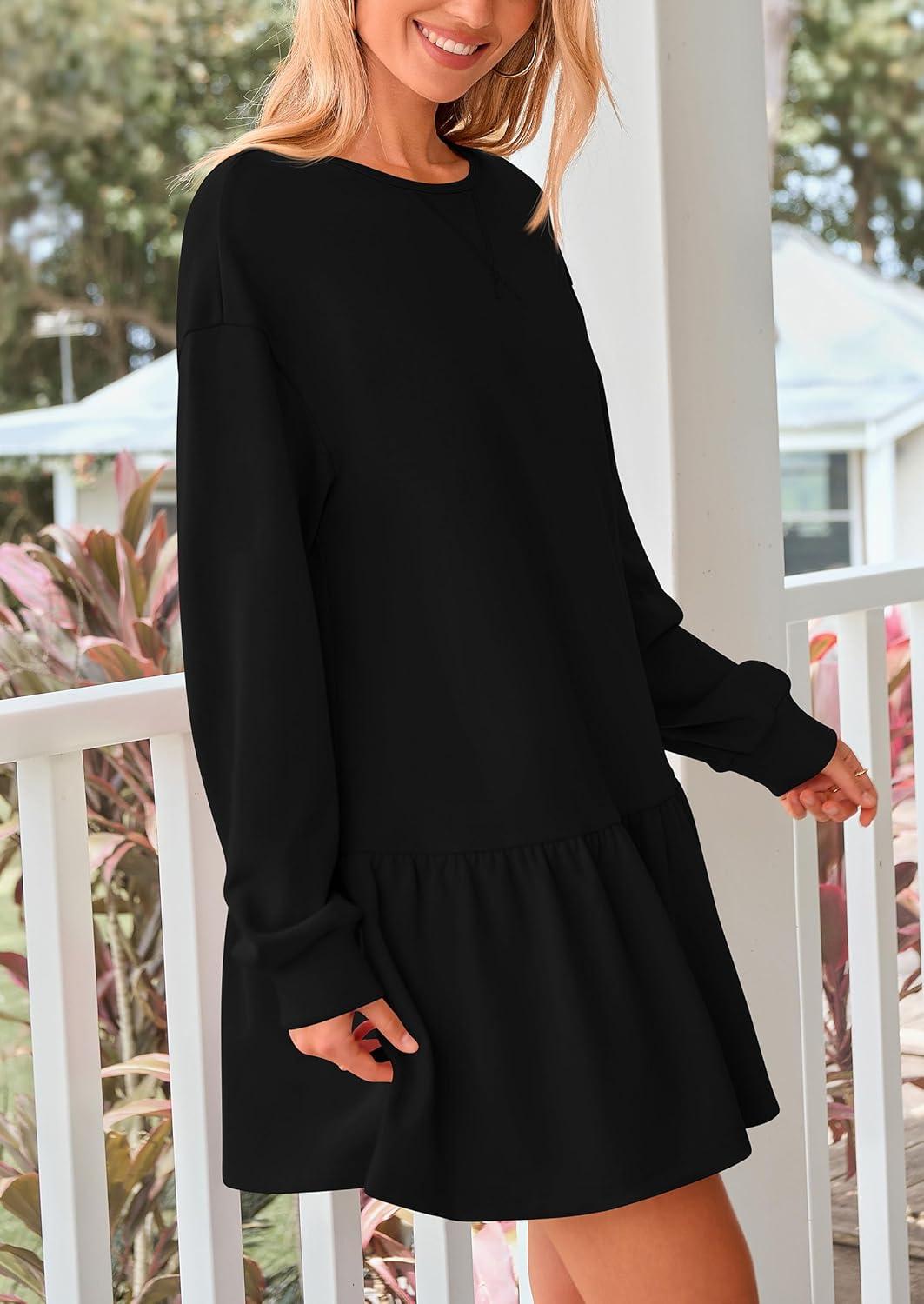 PRETTYGARDEN Womens Patchwork Sweatshirt Dress 2025 Fall Casual Long Sleeve Crewneck Pullover Cute Babydoll Mini Dresses(Black)
