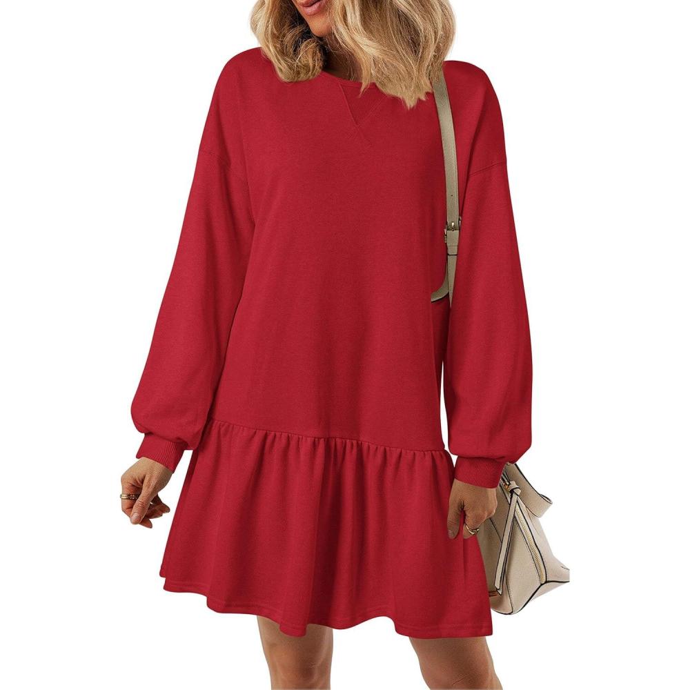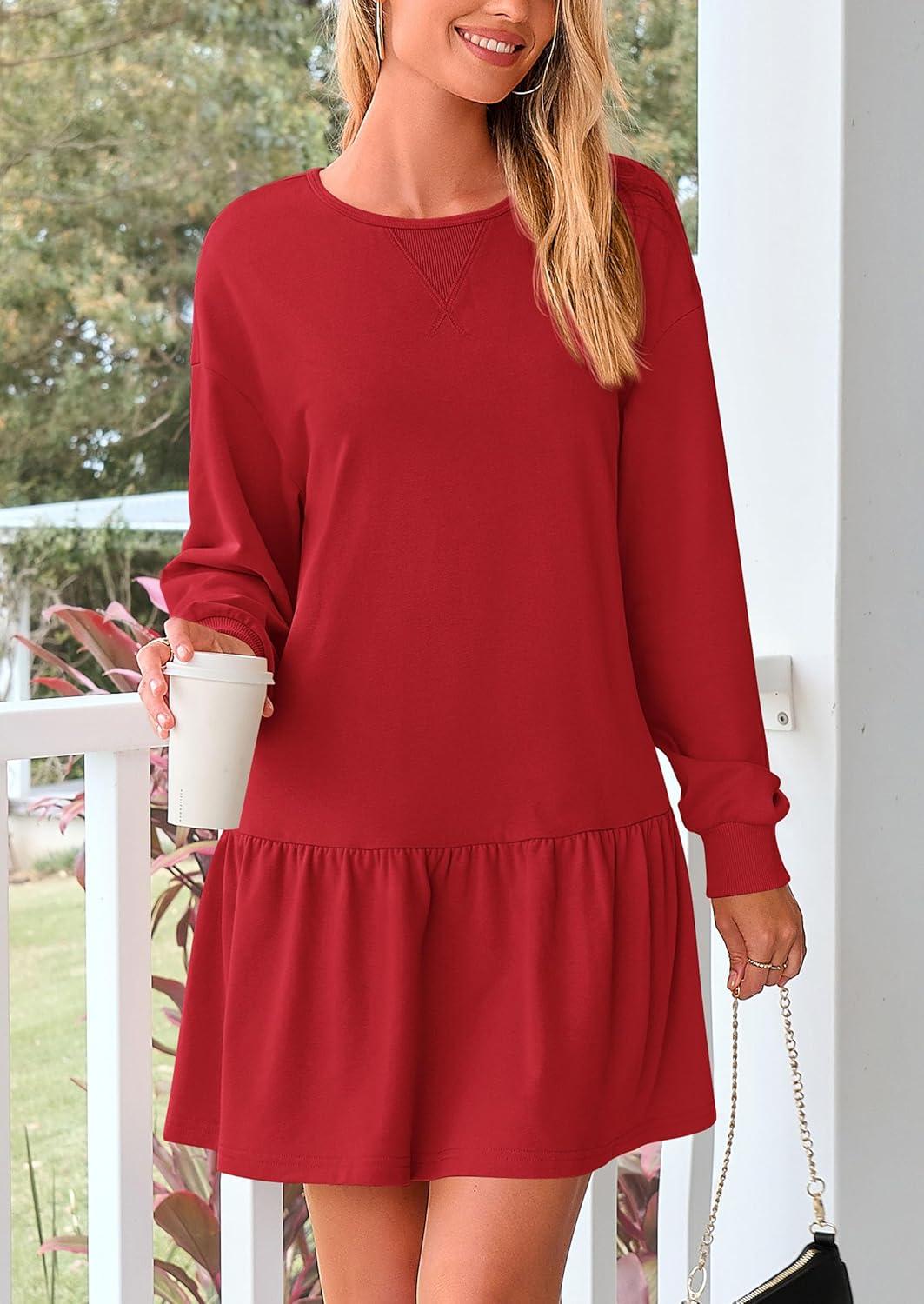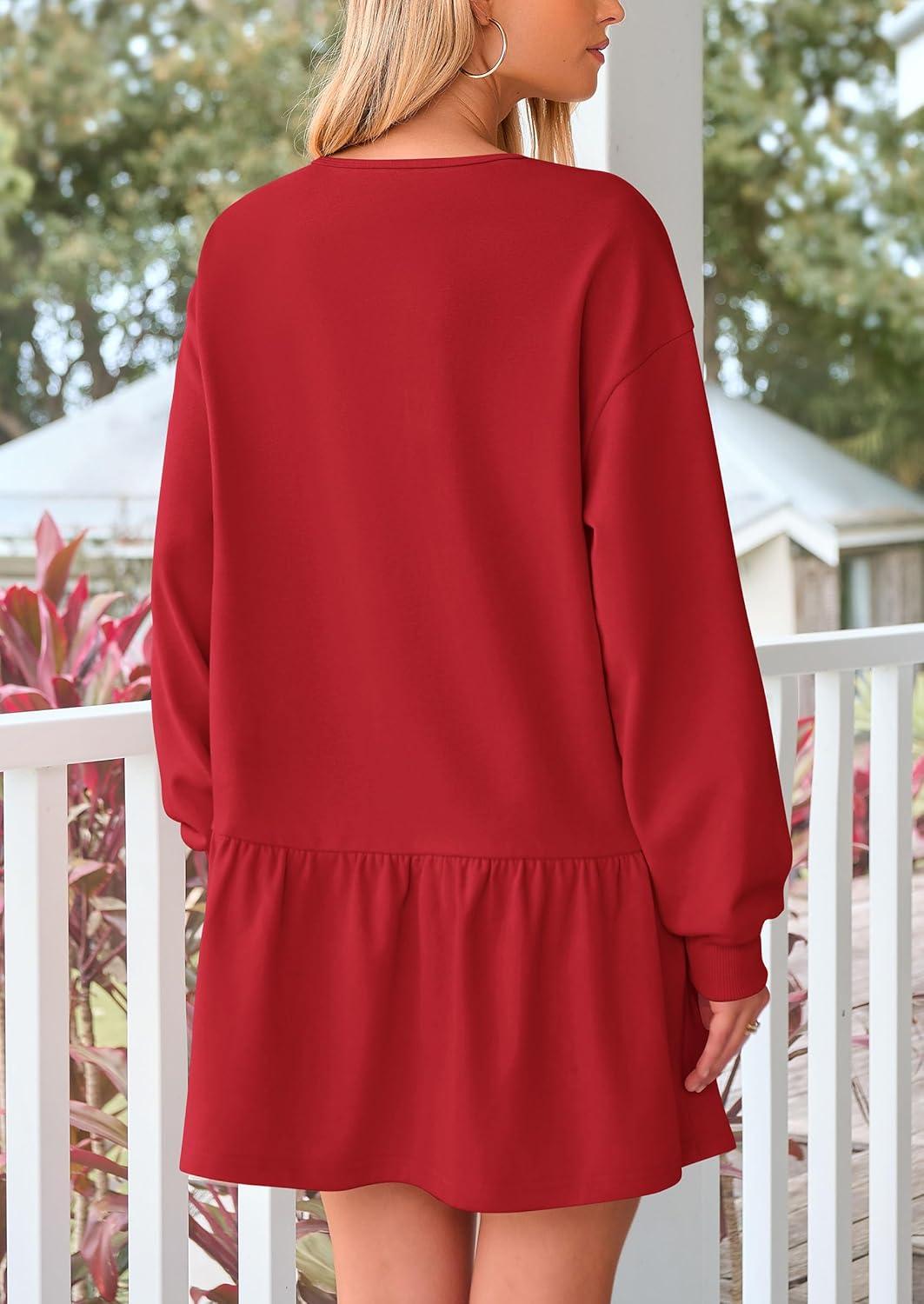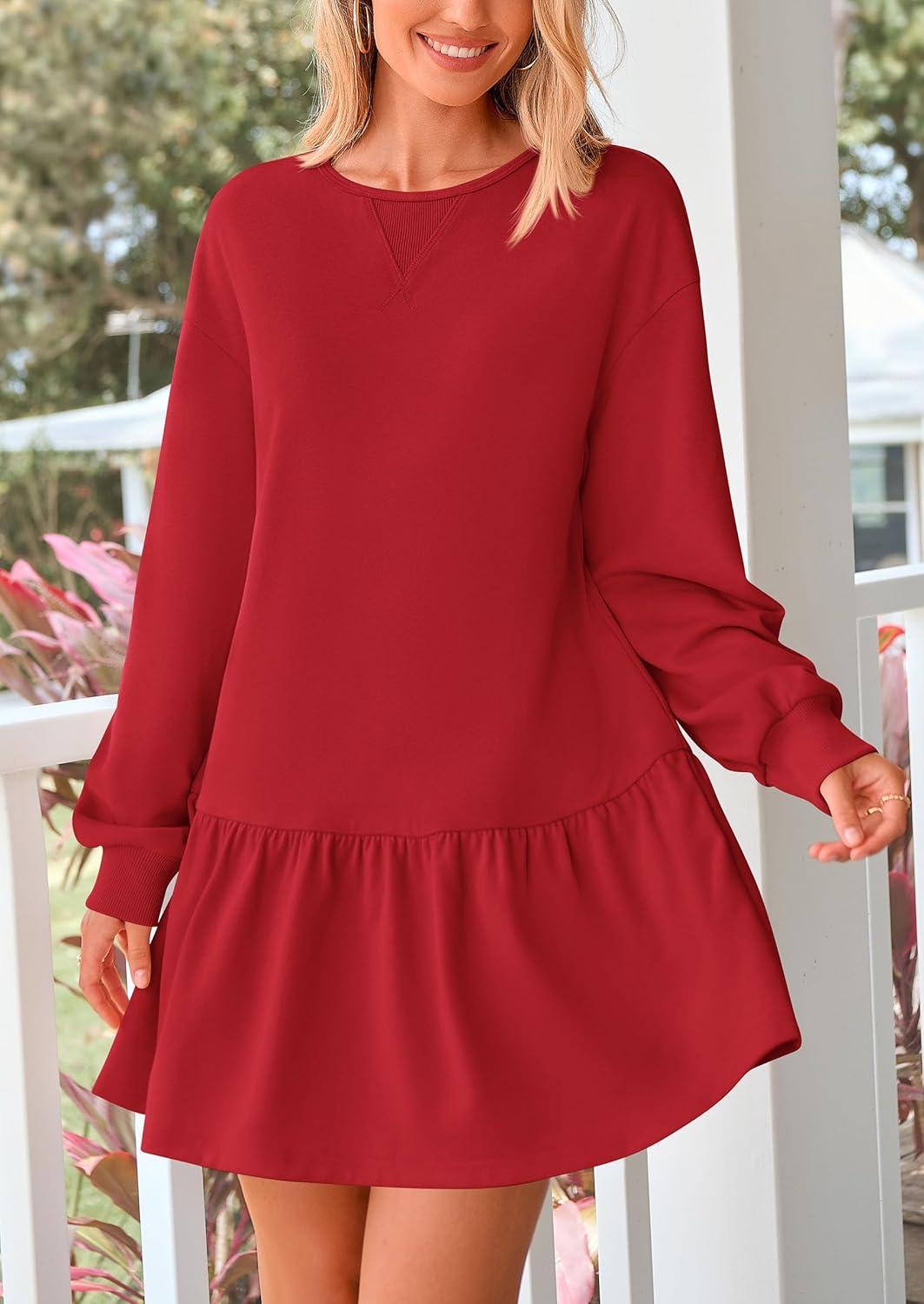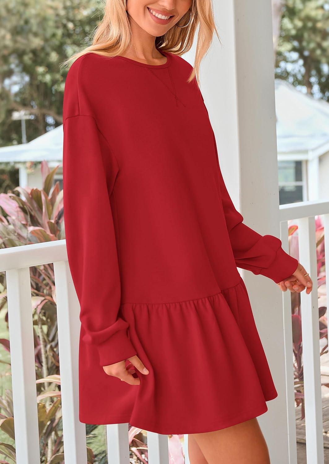 PRETTYGARDEN Womens Patchwork Sweatshirt Dress 2025 Fall Casual Long Sleeve Crewneck Pullover Cute Babydoll Mini Dresses(Red)