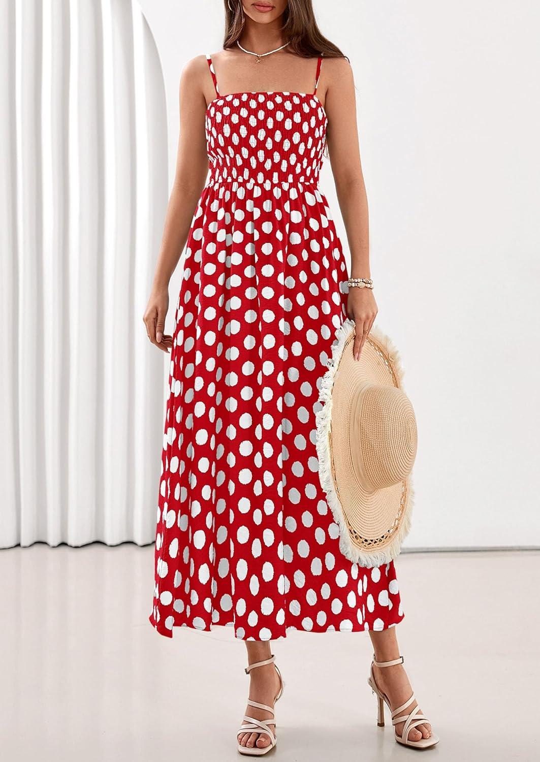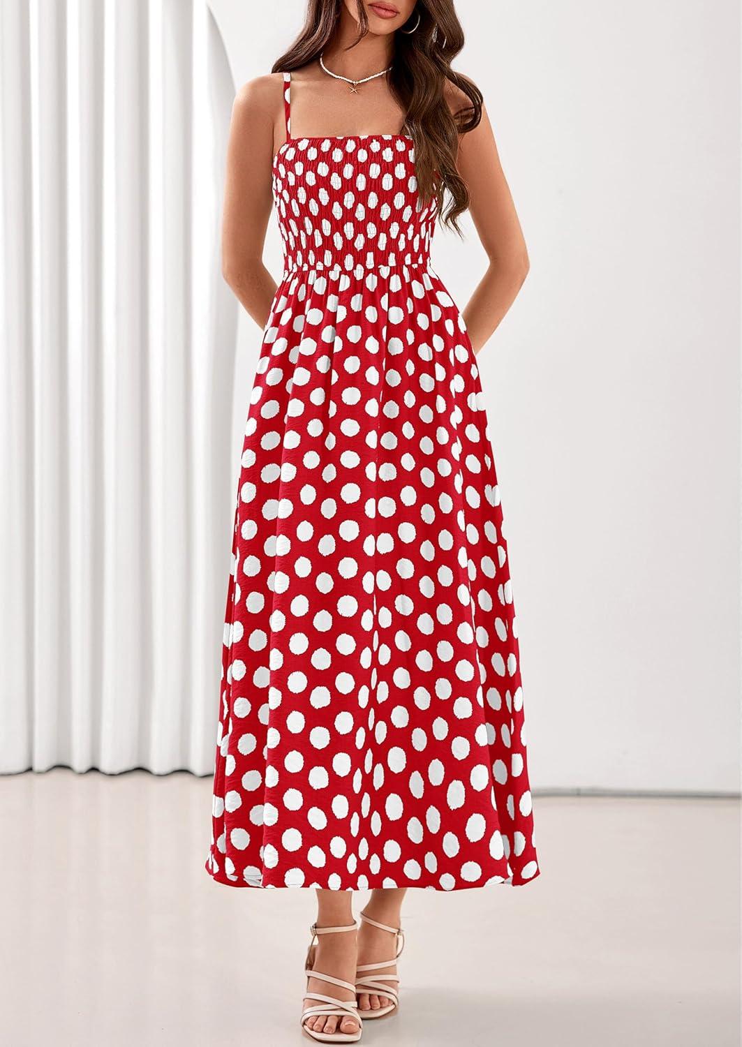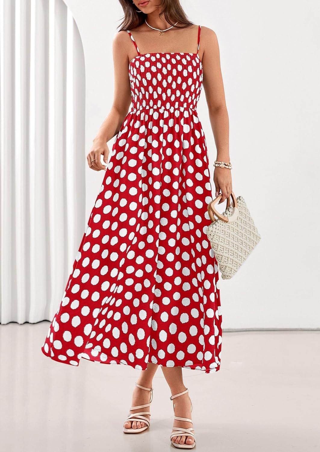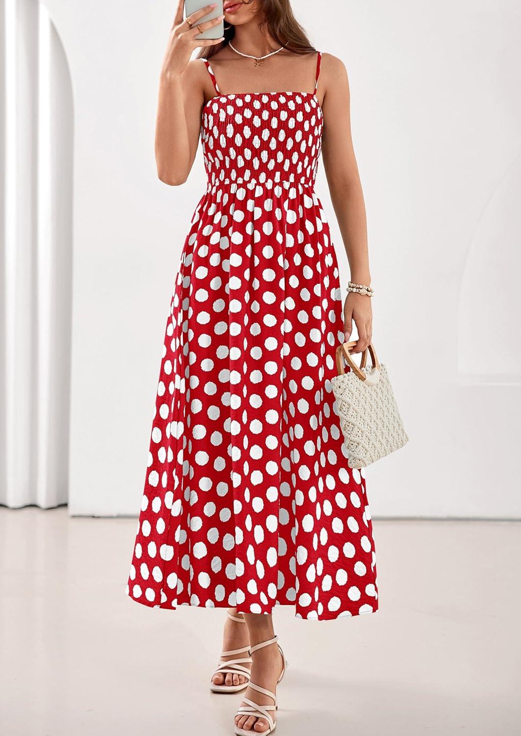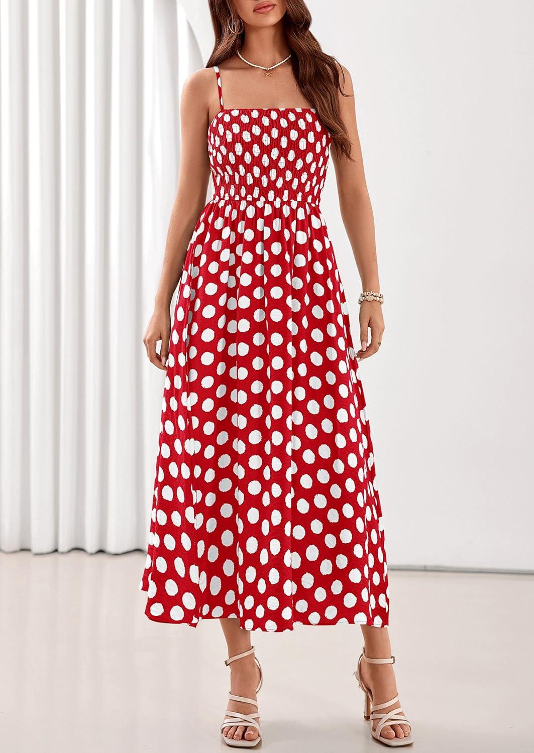 PRETTYGARDEN Womens Polka Dot Dress 2026 Summer Sleeveless Spaghetti Straps Smocked Sun Dress Flowy Spring Beach Midi Dresses(Red)