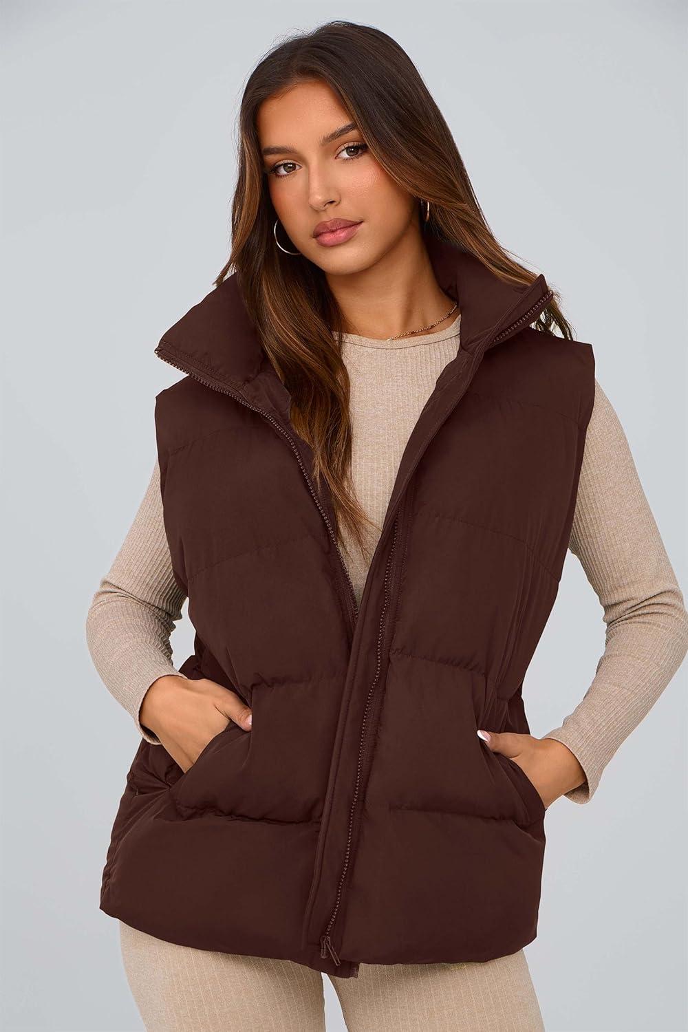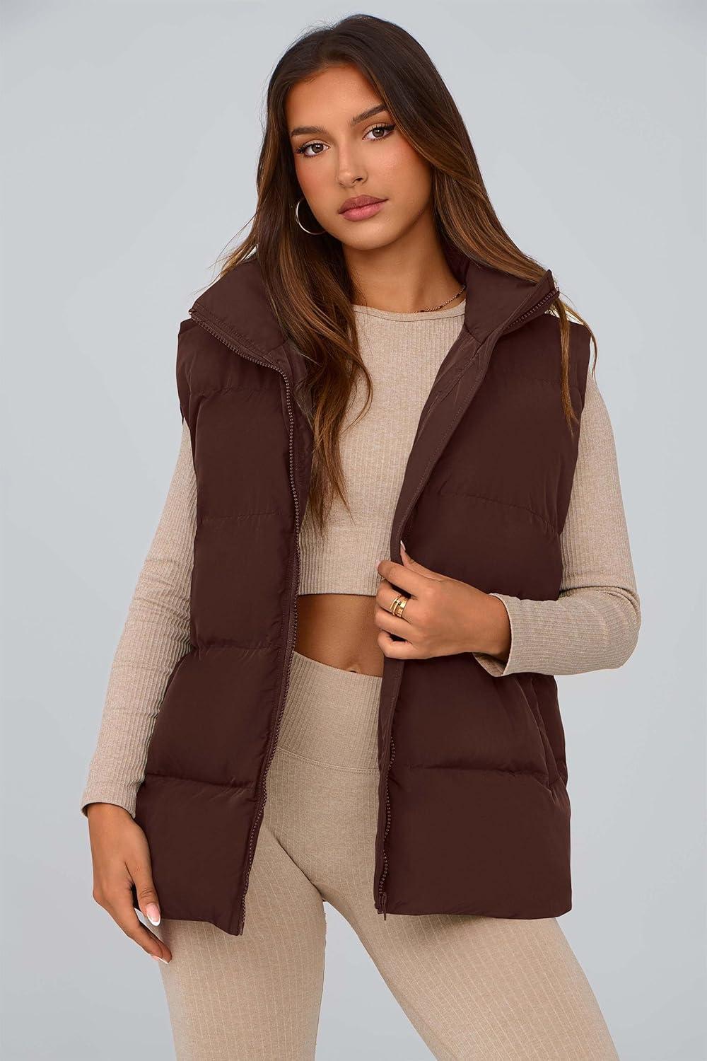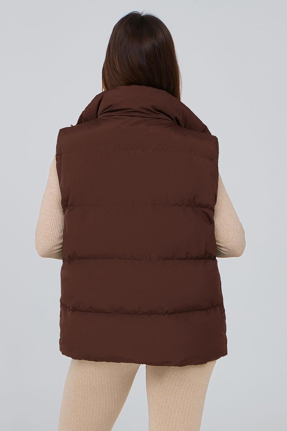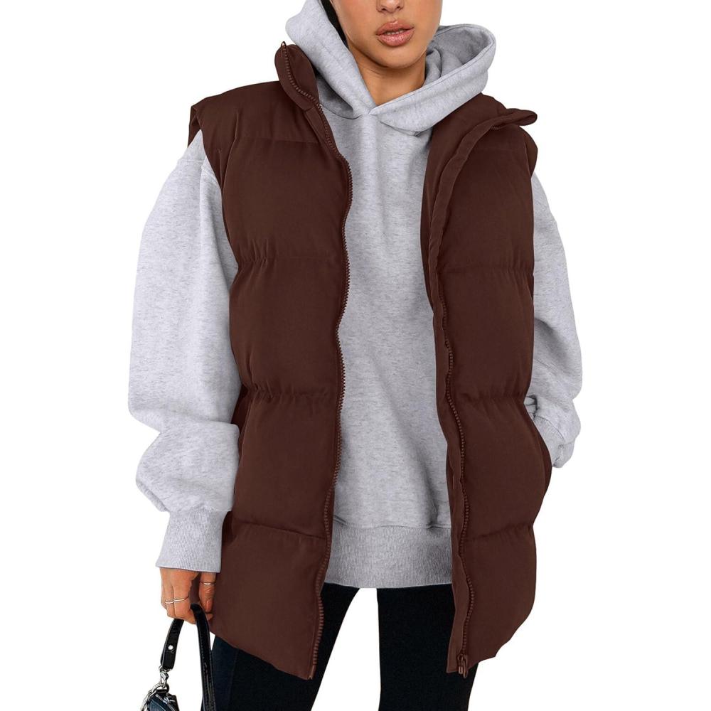 PRETTYGARDEN Women’s Puffer Jacket Vests 2025 Fall Casual Sleeveless Stand Collar Zip Up Coats Warm Winter Outerwear(Dark Brown)