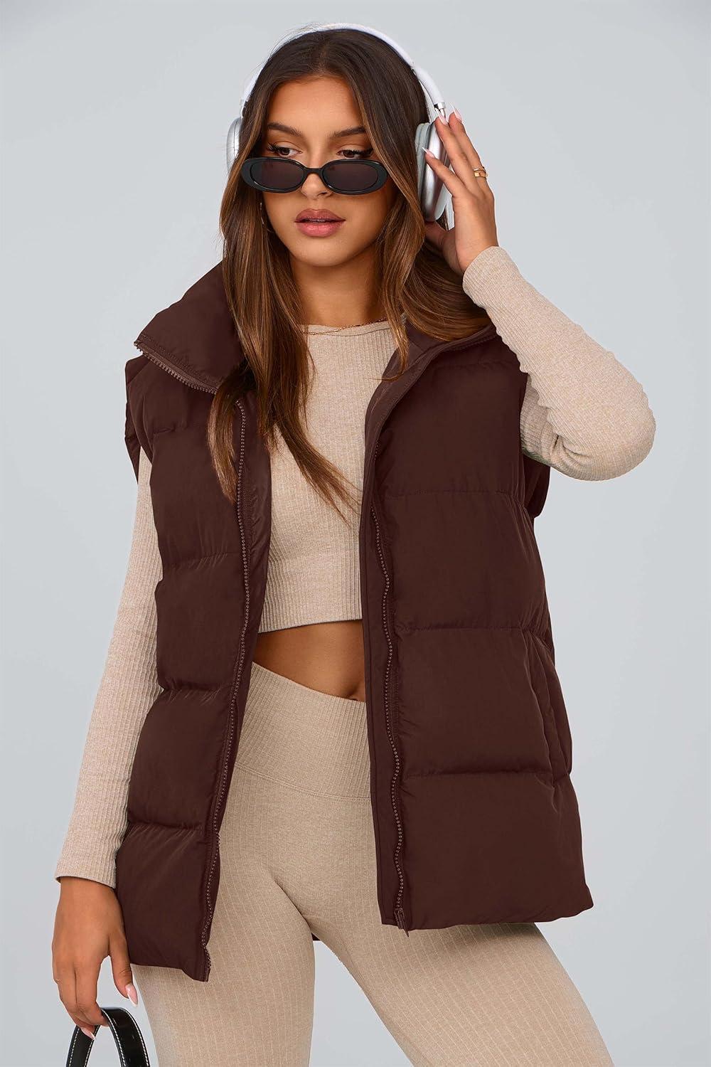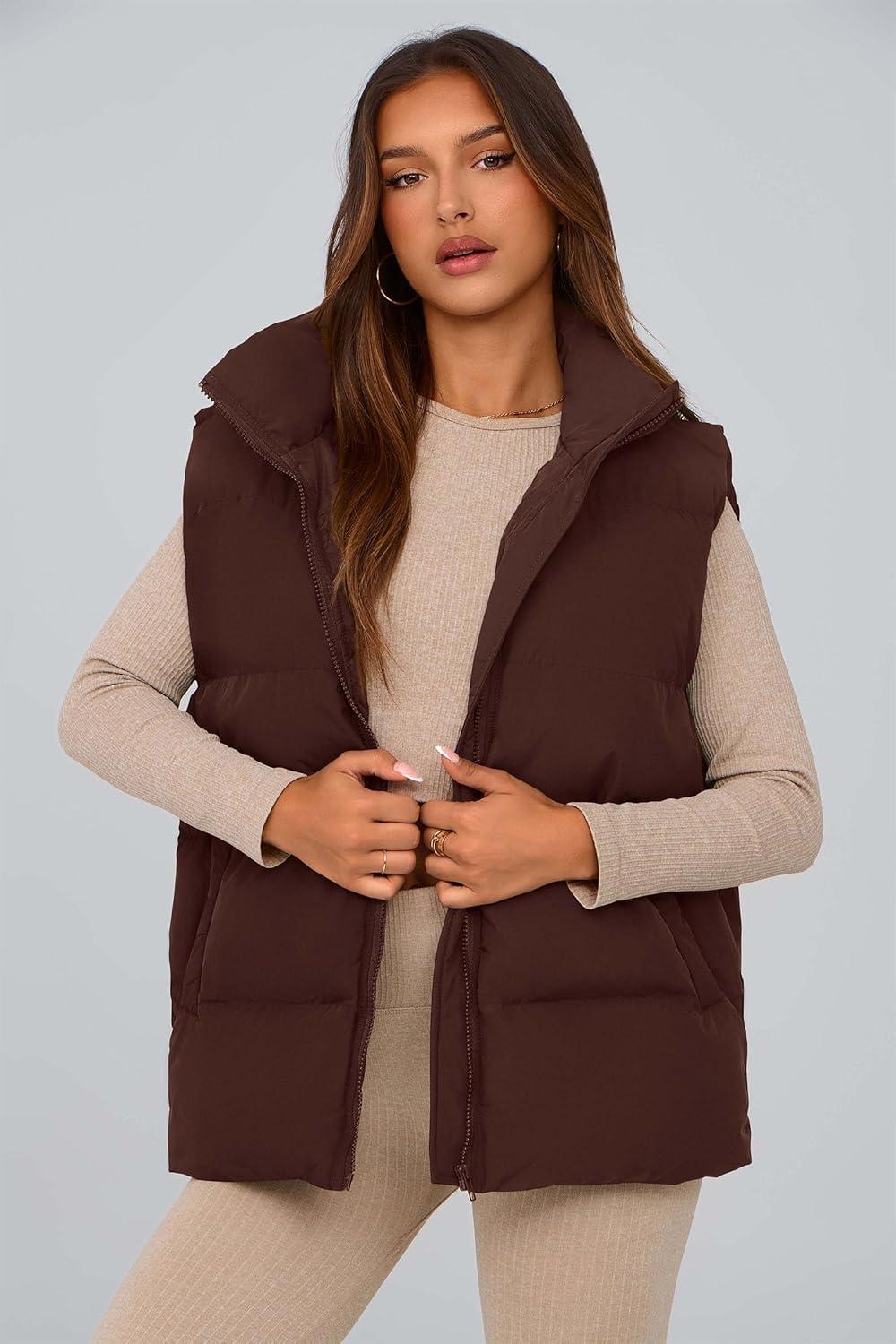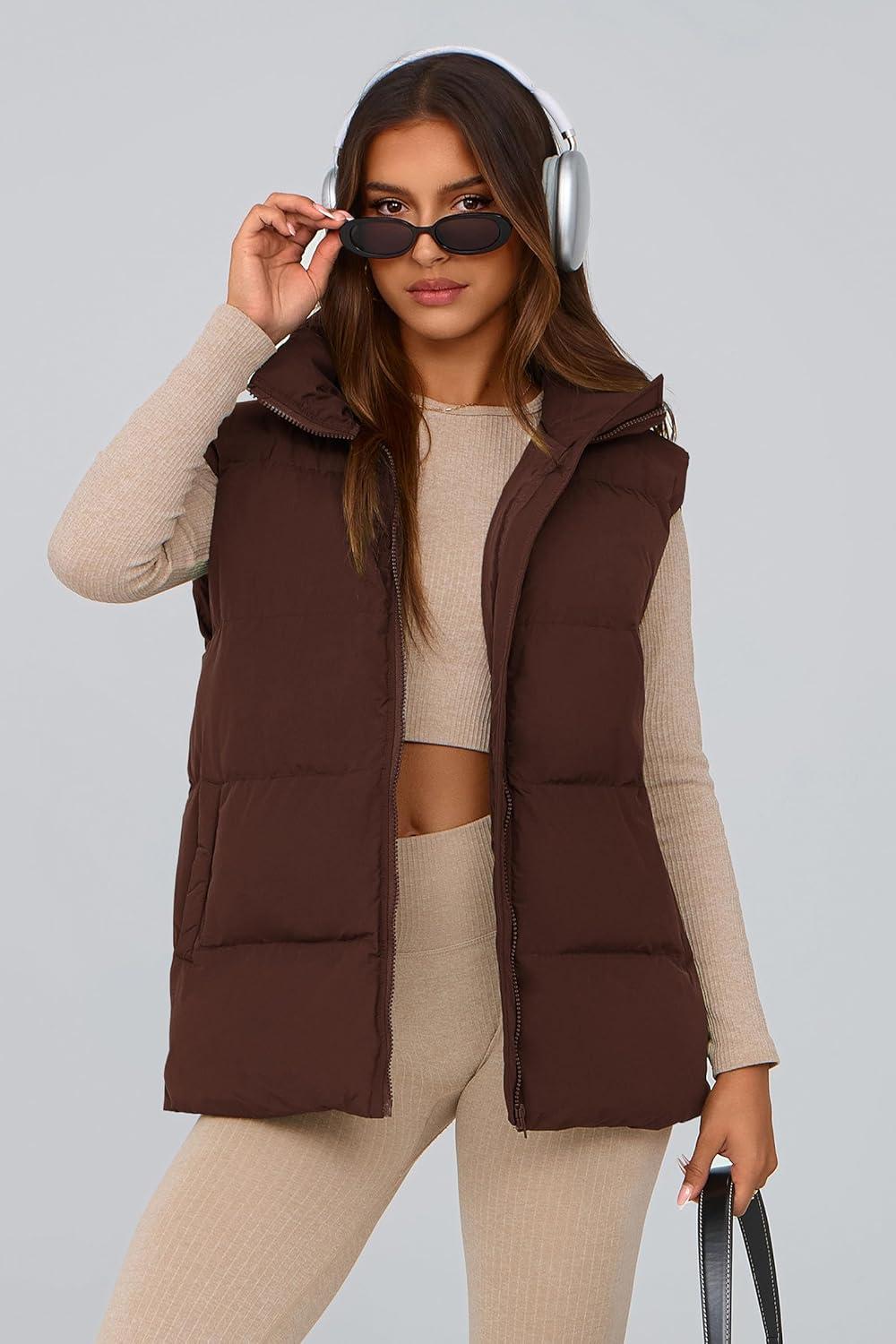 PRETTYGARDEN Women’s Puffer Jacket Vests 2025 Fall Casual Sleeveless Stand Collar Zip Up Coats Warm Winter Outerwear(Dark Brown)