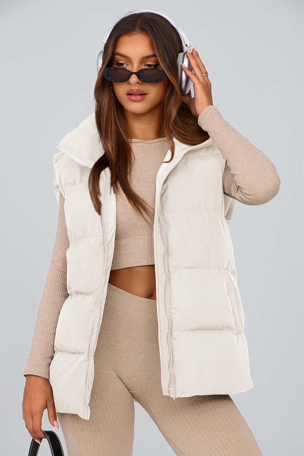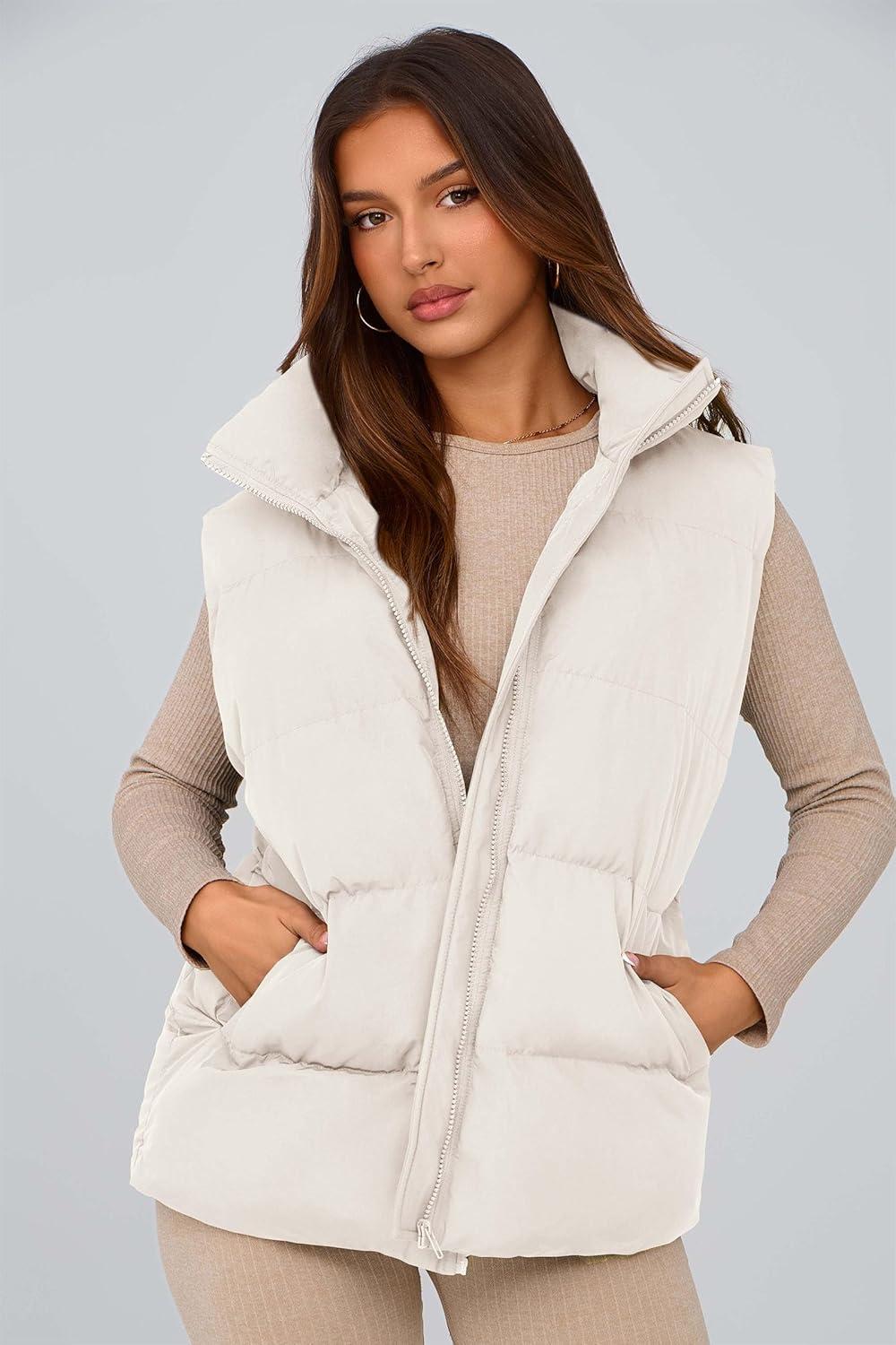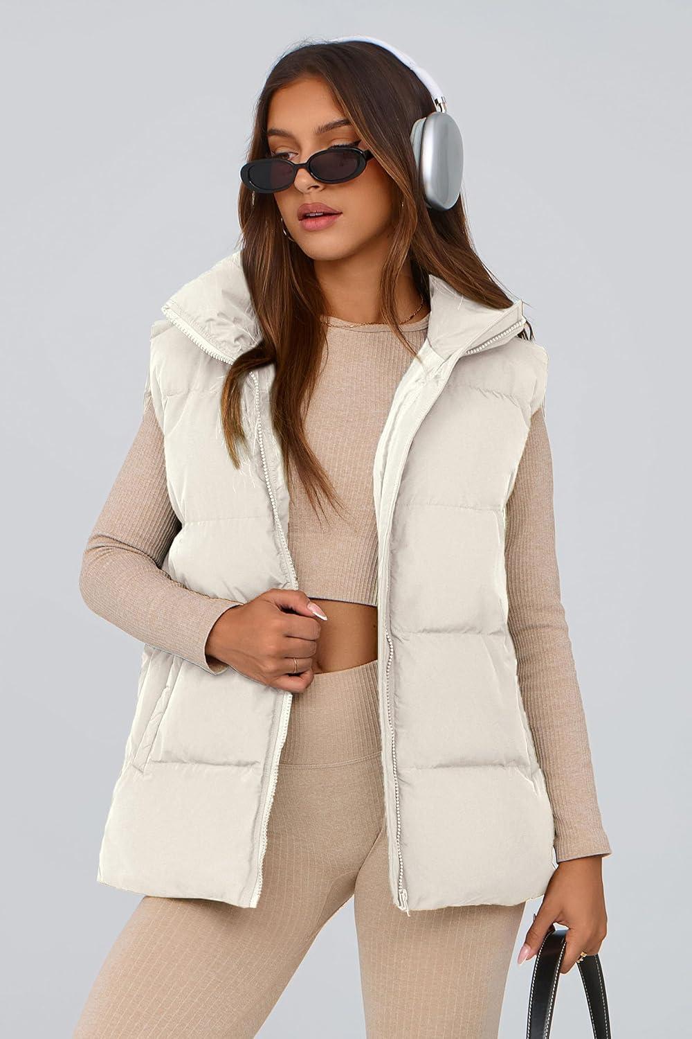PRETTYGARDEN Women’s Puffer Jacket Vests 2025 Fall Casual Sleeveless Stand Collar Zip Up Coats Warm Winter Outerwear(White)