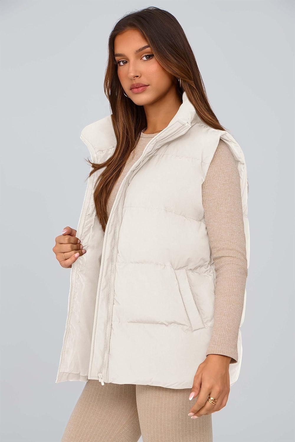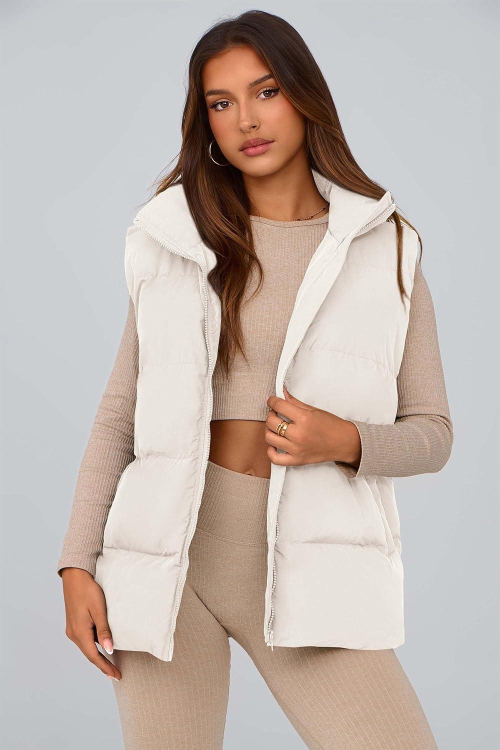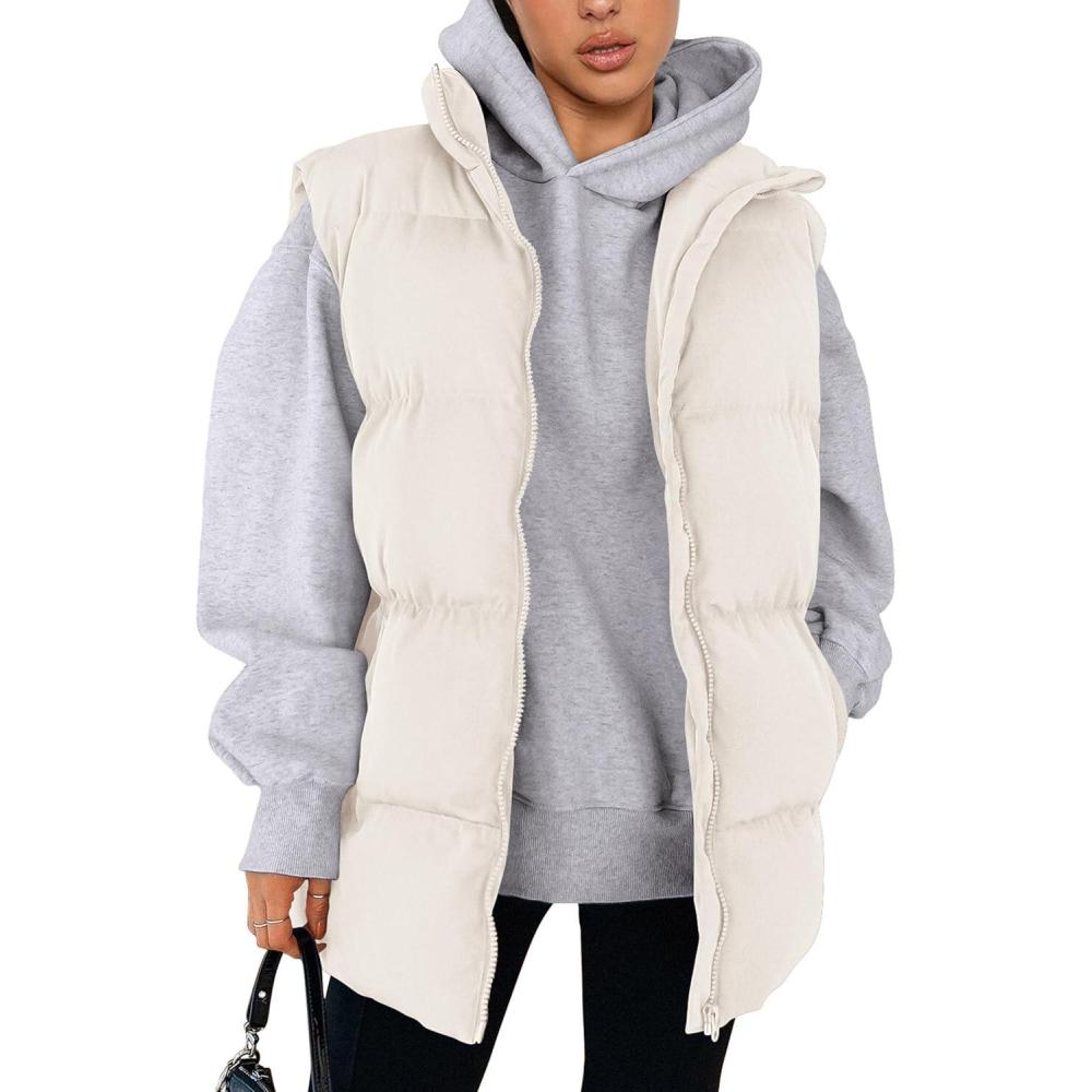 PRETTYGARDEN Women's Puffer Jacket Vests 2025 Fall Casual Sleeveless Stand Collar Zip Up Coats Warm Winter Outerwear(White)