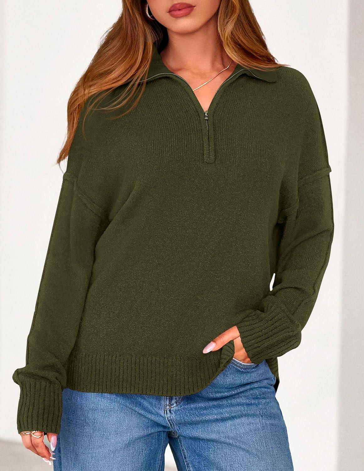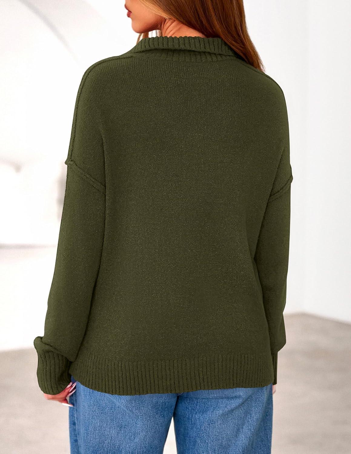 PRETTYGARDEN Womens Quarter Zip Pullover V Neck Fall Sweaters 2025 Long Sleeve Tops Collared Business Casual Winter Clothing(Army Green)