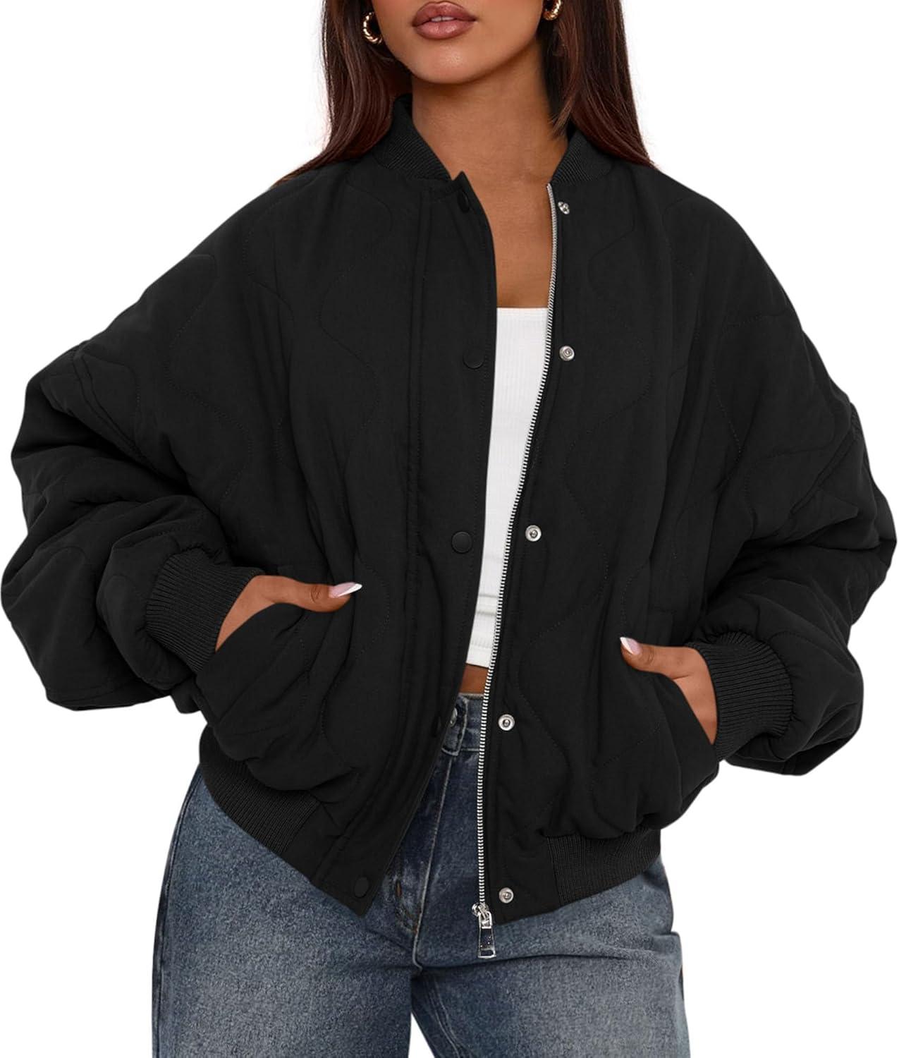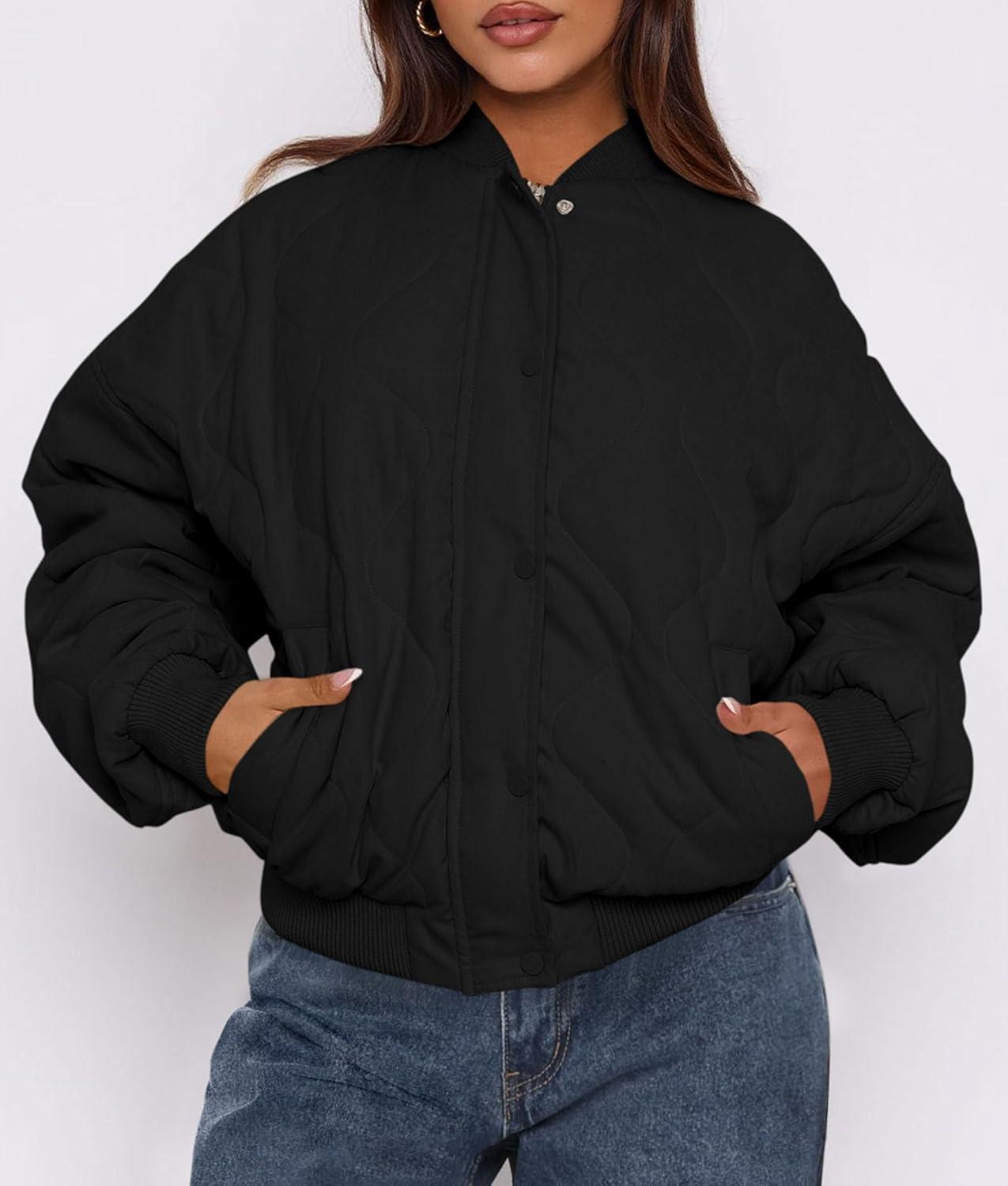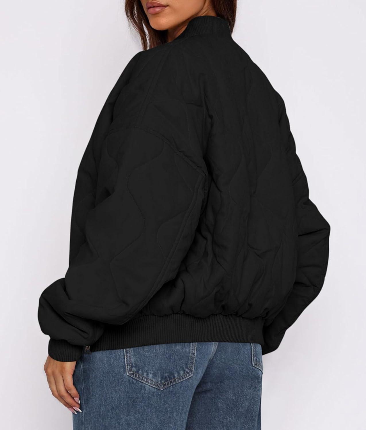 PRETTYGARDEN Women’s Quilted Bomber Jacket Fall Fashion 2025 Lightweight Cropped Zip up Outerwear Winter Puffer Coats Pockets(Black)