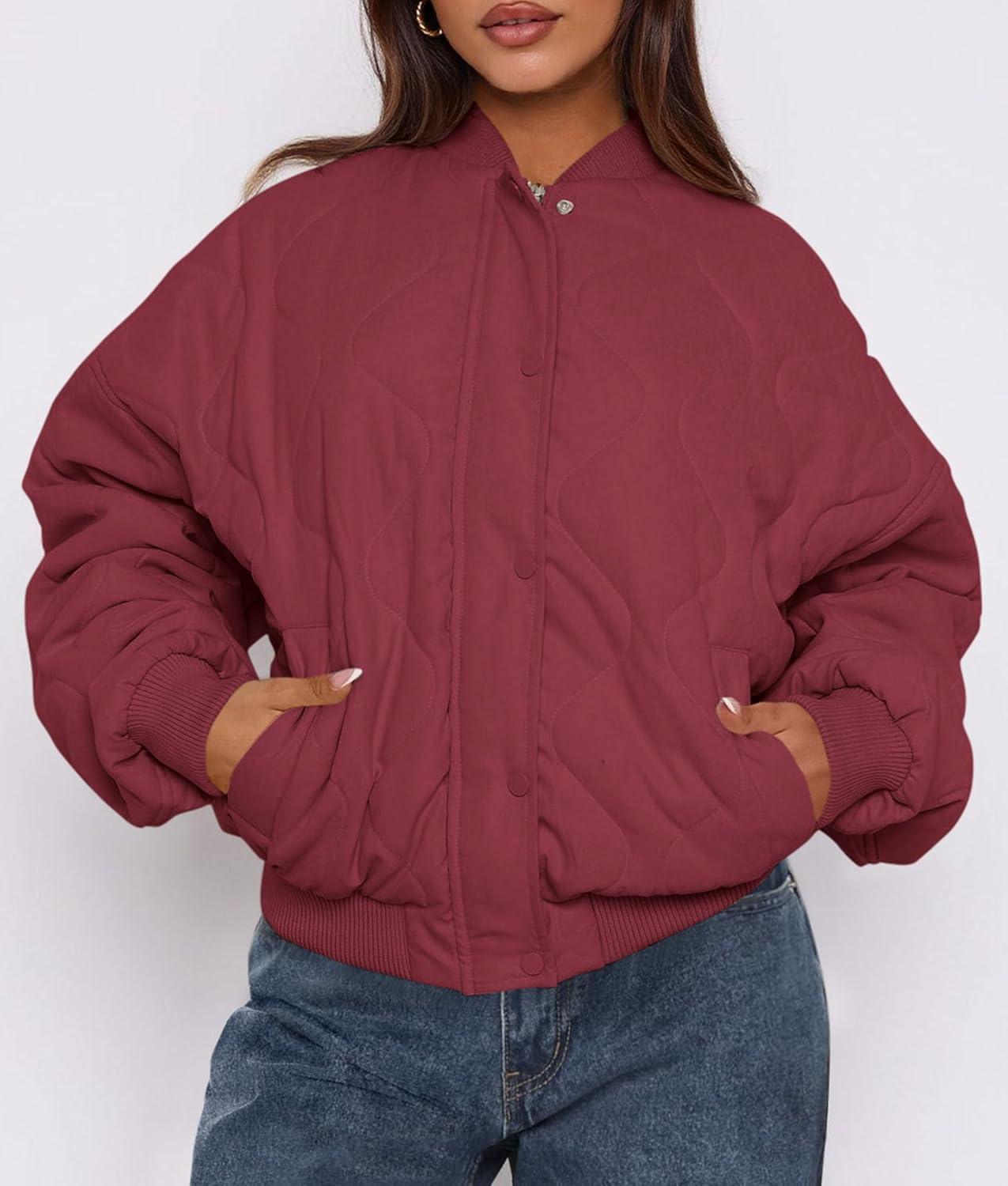 PRETTYGARDEN Women’s Quilted Bomber Jacket Fall Fashion 2025 Lightweight Cropped Zip up Outerwear Winter Puffer Coats Pockets(Burgundy)