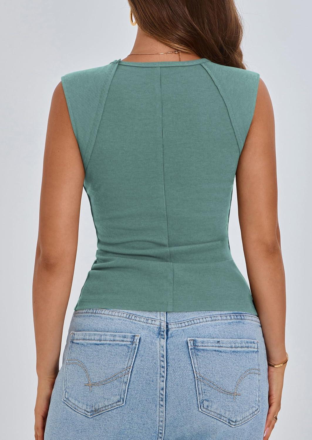 PRETTYGARDEN Women's Ribbed Tank Tops 2025 Summer Cap Sleeve Slim Fitted Knit Basic Casual Tee Shirts Trendy Fashion Clothes(Bean Green)