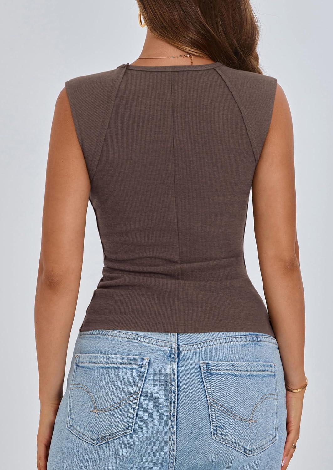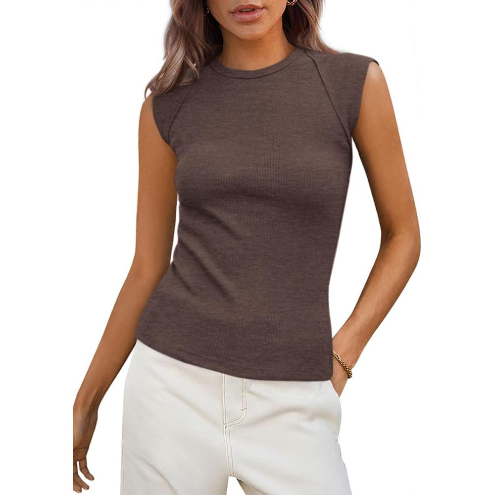 PRETTYGARDEN Women's Ribbed Tank Tops 2025 Summer Cap Sleeve Slim Fitted Knit Basic Casual Tee Shirts Trendy Fashion Clothes(Dark Coffee)