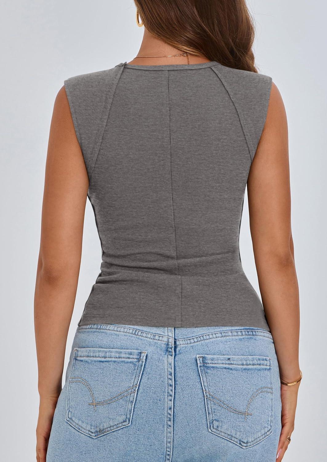 PRETTYGARDEN Women's Ribbed Tank Tops 2025 Summer Cap Sleeve Slim Fitted Knit Basic Casual Tee Shirts Trendy Fashion Clothes(Grey)