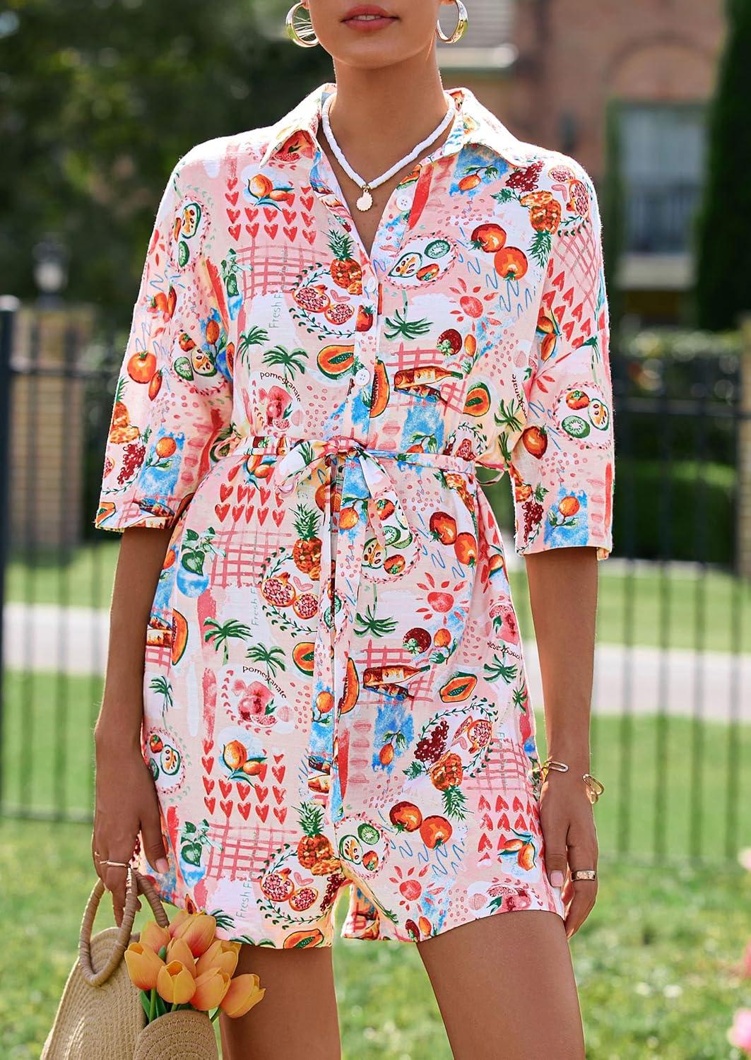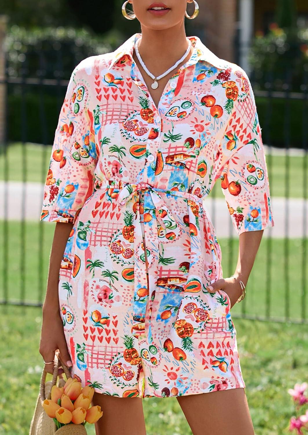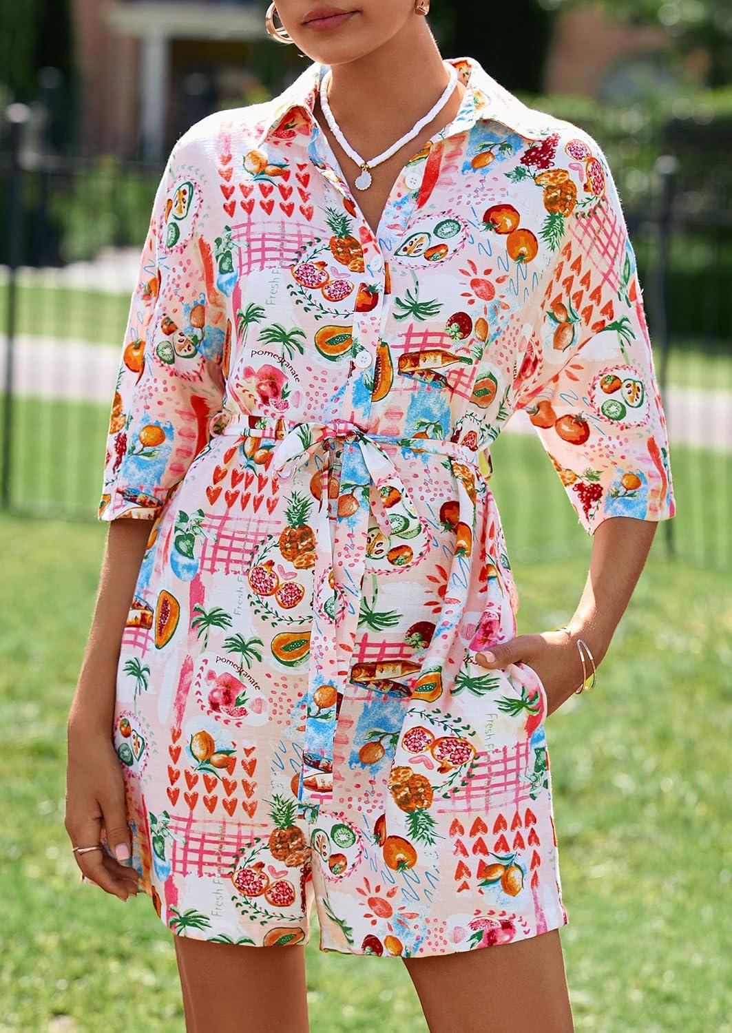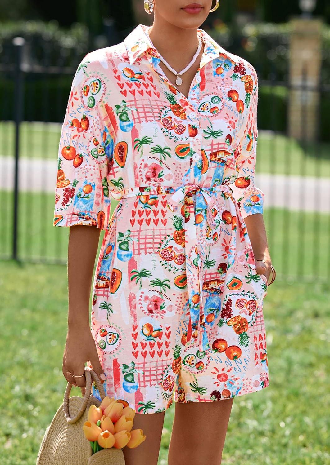 PRETTYGARDEN Womens Rompers for Summer 2025 Beach Vacation Clothes Short Sleeves Floral Jumpsuits Beach Cover Up(Multicolored Flower)