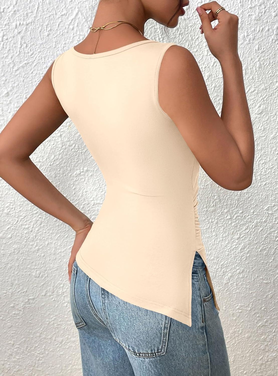 PRETTYGARDEN Womens Ruched Tank Tops 2026 Summer Sleeveless Slim Fit T Shirts Blouses Going Out Y2K Fashion Clothes(Beige)
