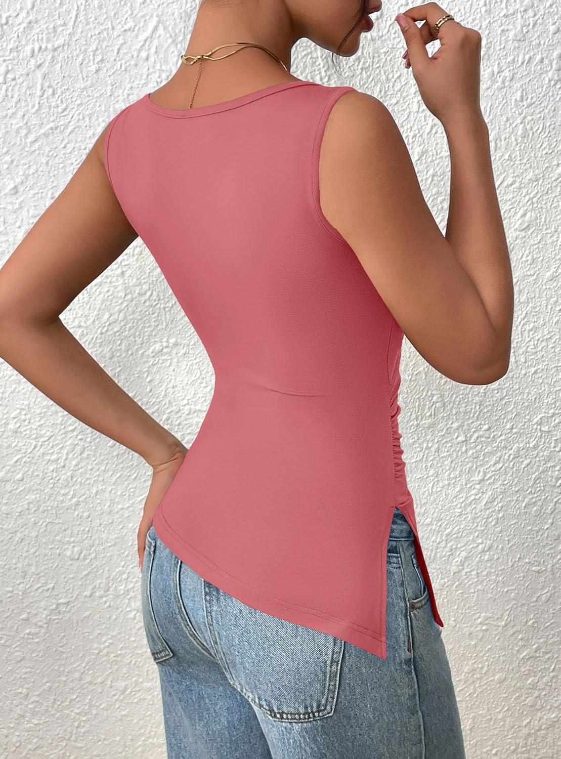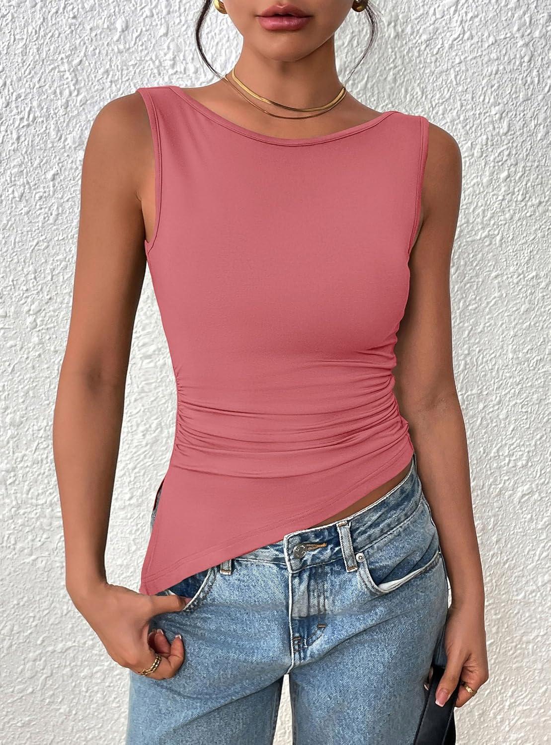 PRETTYGARDEN Womens Ruched Tank Tops 2026 Summer Sleeveless Slim Fit T Shirts Blouses Going Out Y2K Fashion Clothes(Pink)