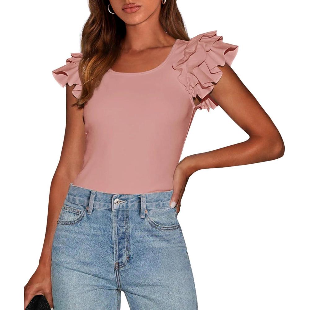 Be the first to review “PRETTYGARDEN Women’s Ruffle Short Sleeve Shirts 2025 Summer Casual Basic Tee Cute Fitted Crew Neck Fashion Tops Clothes(Dusty Pink)”