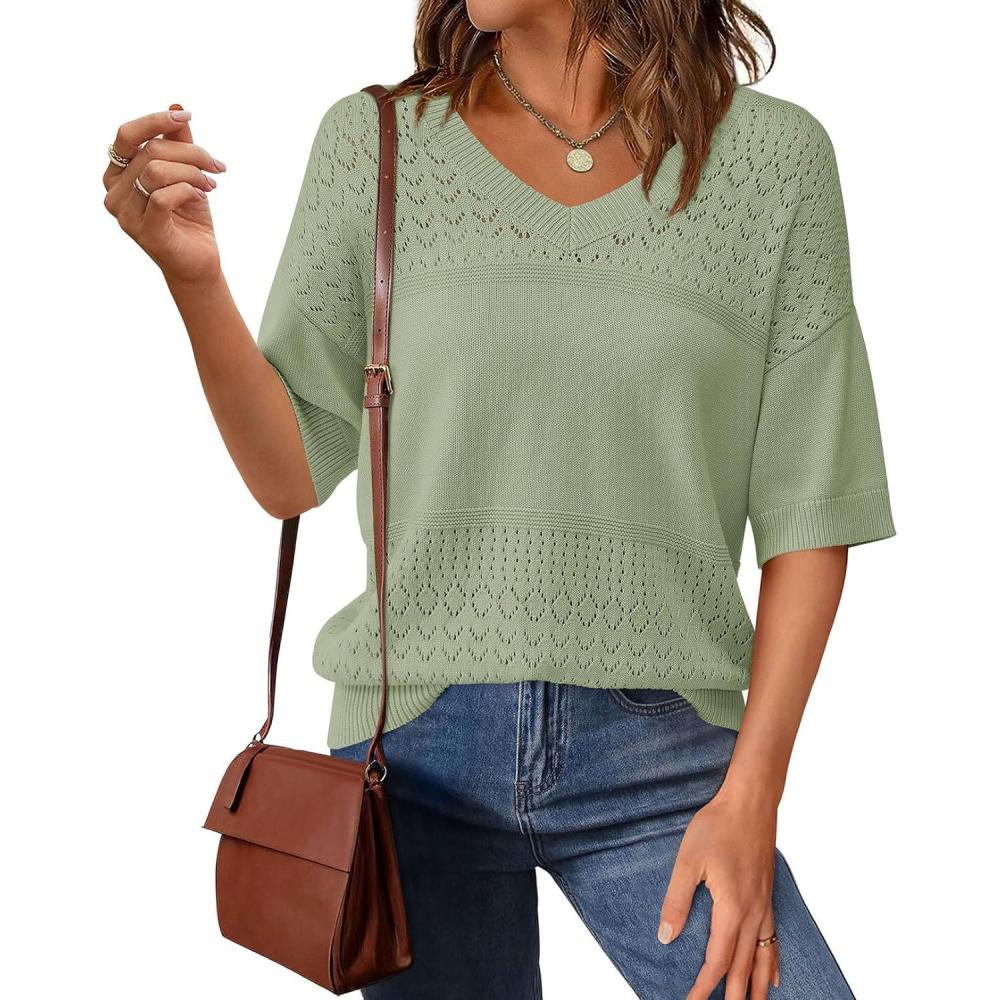 Be the first to review “PRETTYGARDEN Women’s Short Sleeve Sweater Tops 2025 Spring Summer Casual V Neck Ribbed Knit Trendy Eyelet Blouse T Shirts(Mid Green)”