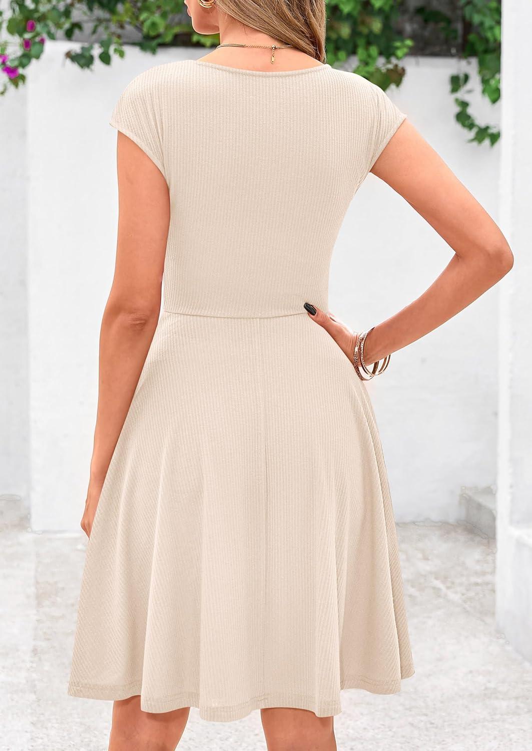Be the first to review “PRETTYGARDEN Womens Short Summer Dress 2025 Crewneck Cap Sleeve Ribbed Knit Casual Flowy A Line Mini Sundresses with Pockets(Apricot Pink)”