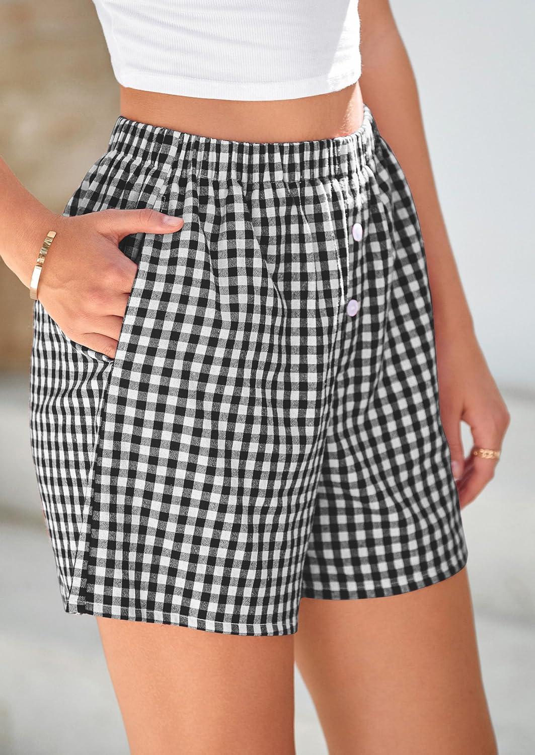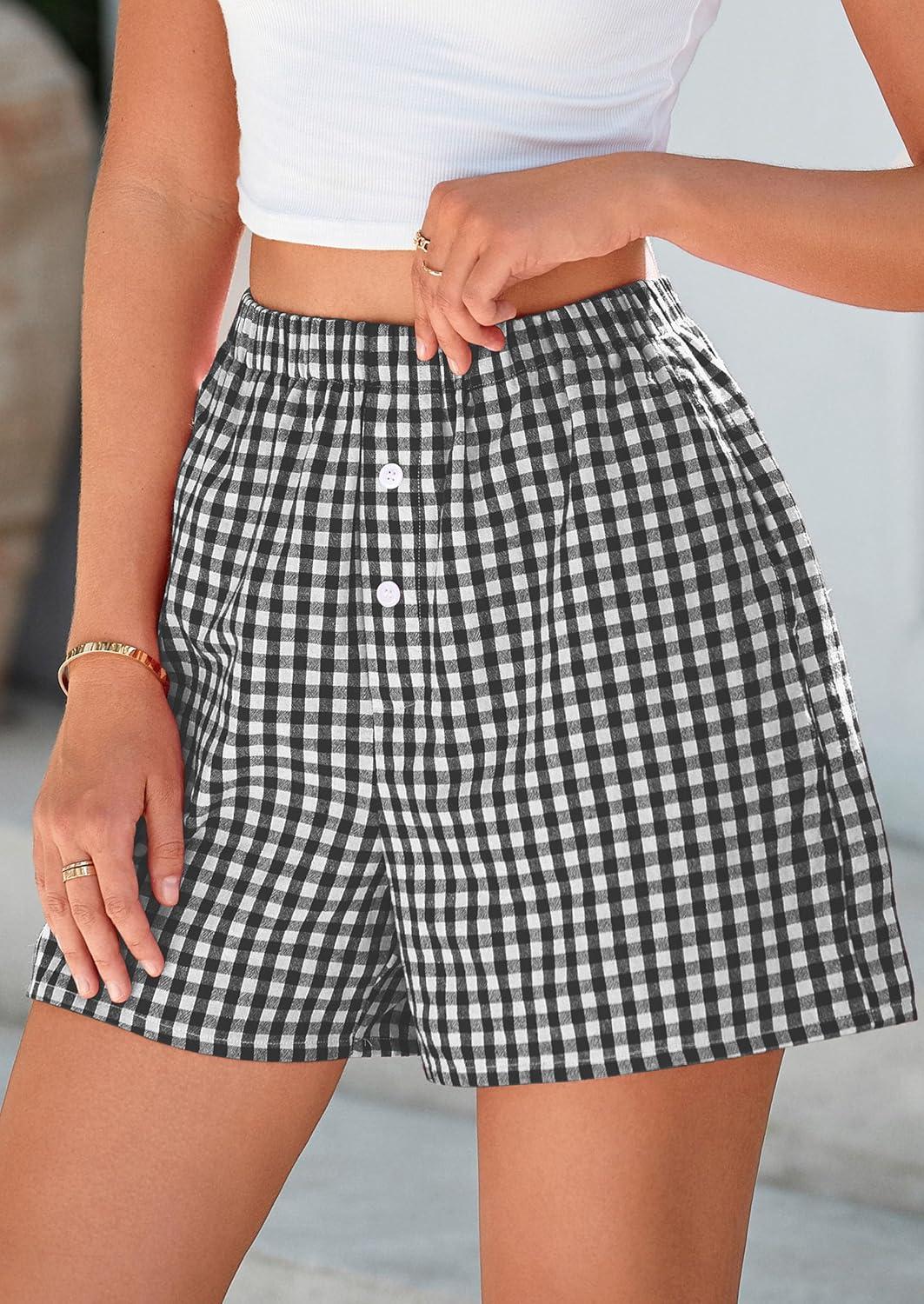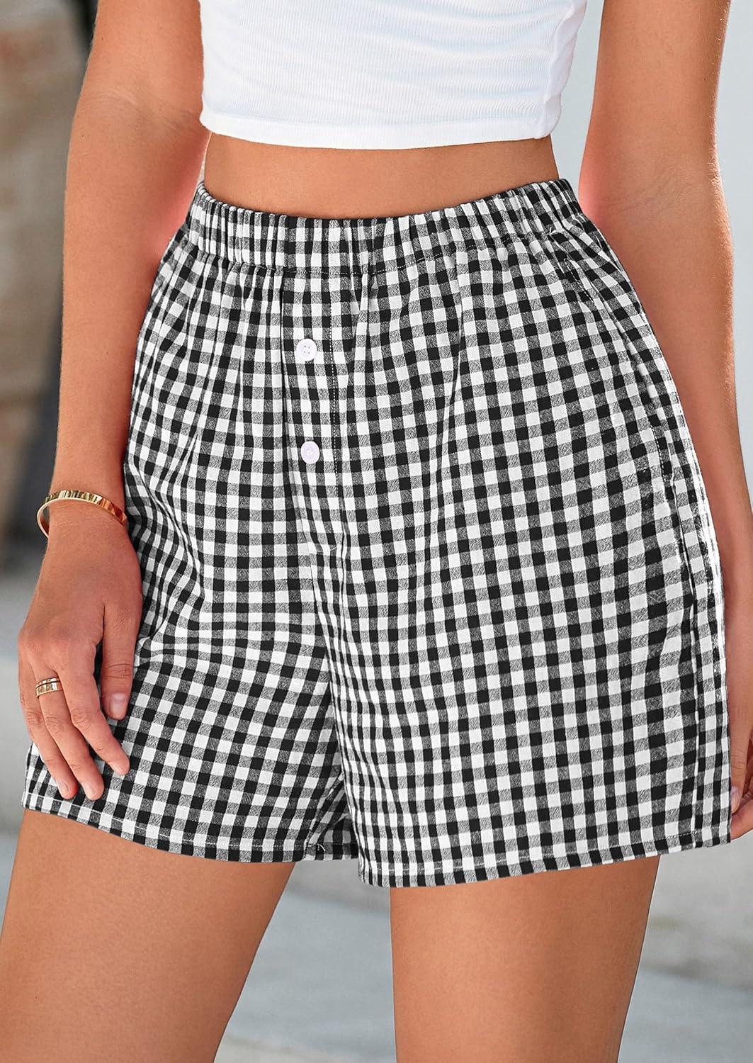PRETTYGARDEN Womens Shorts Boxers 2025 Summer Gingham Pajama Lounge Sleep Y2K Plaid Pj Shorts Beach Bottoms(Black)