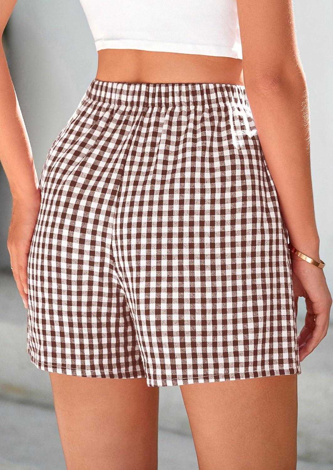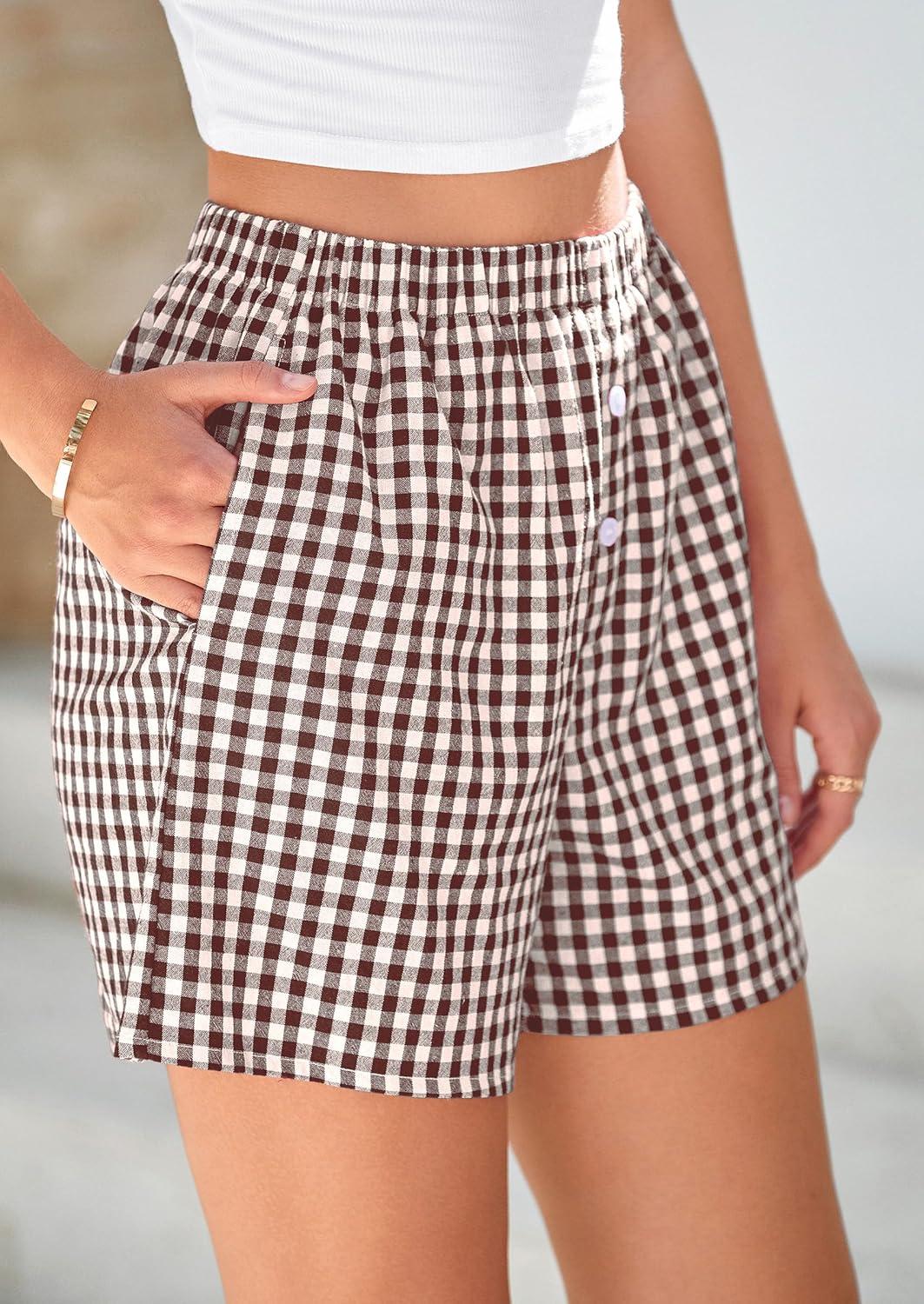 PRETTYGARDEN Womens Shorts Boxers 2025 Summer Gingham Pajama Lounge Sleep Y2K Plaid Pj Shorts Beach Bottoms(Brown)