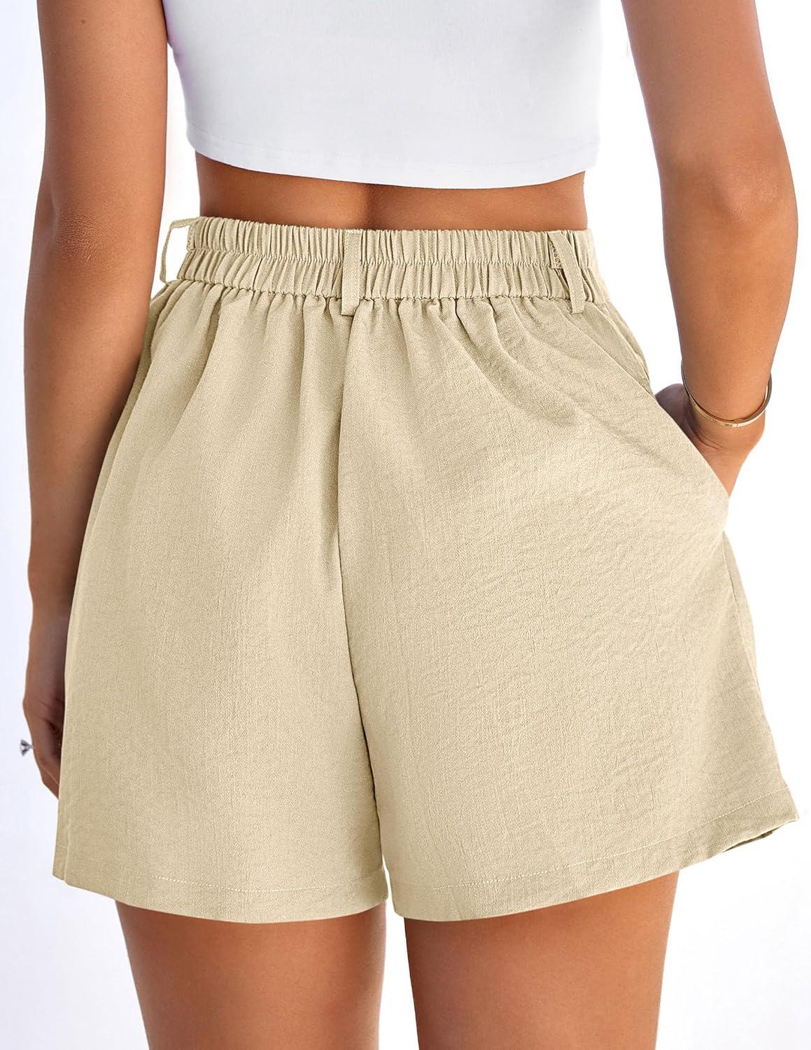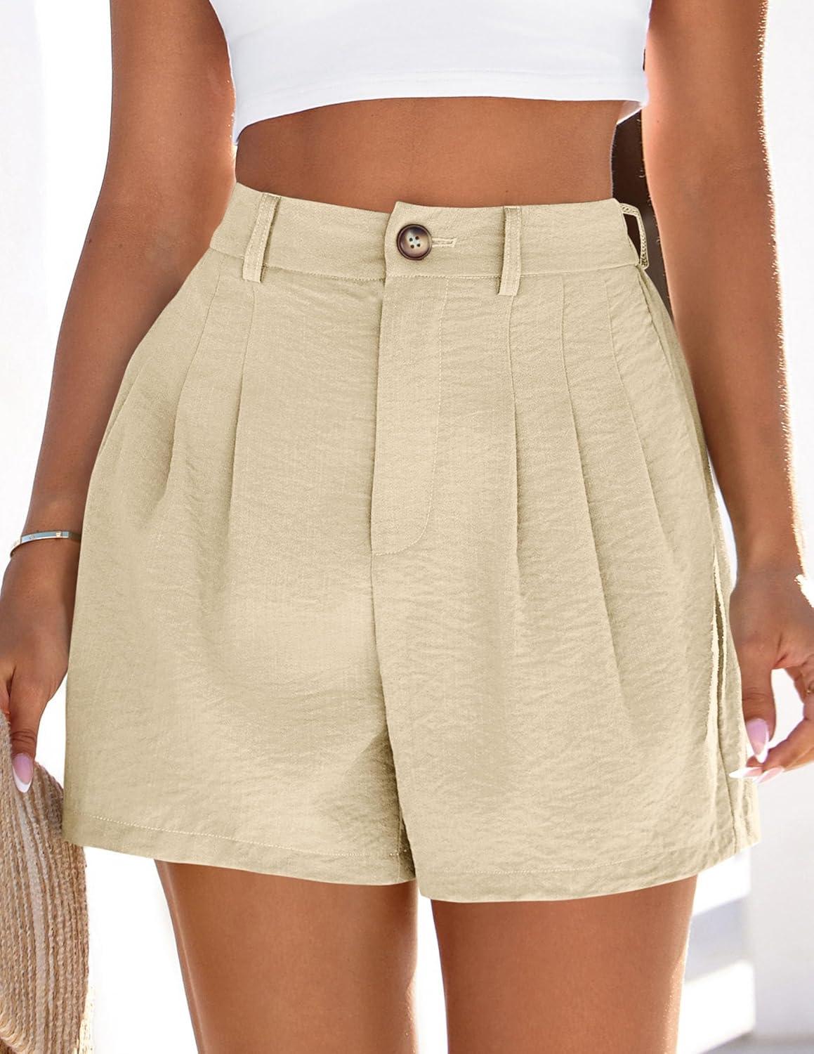 PRETTYGARDEN Womens Shorts Casual 2026 Summer Elastic High Waist Zipper Button Tailored Shorts Pleated Beach Vacation Outfits(Apricot)