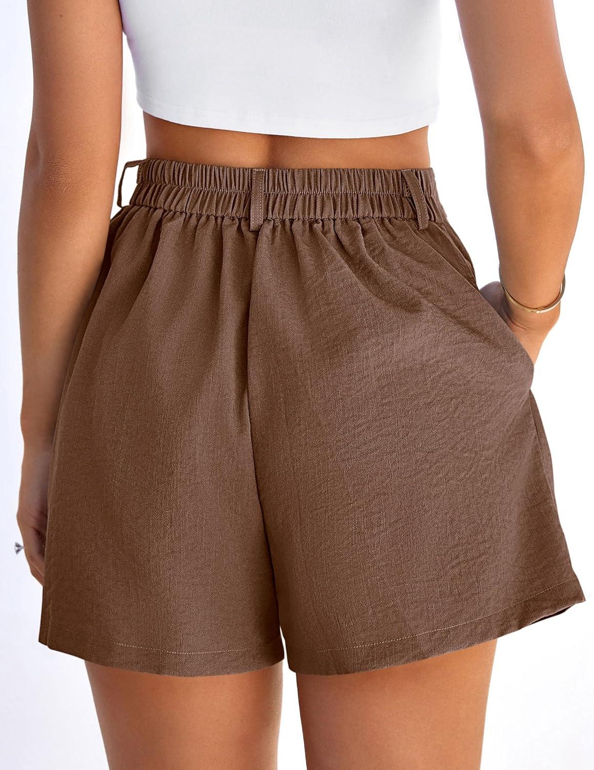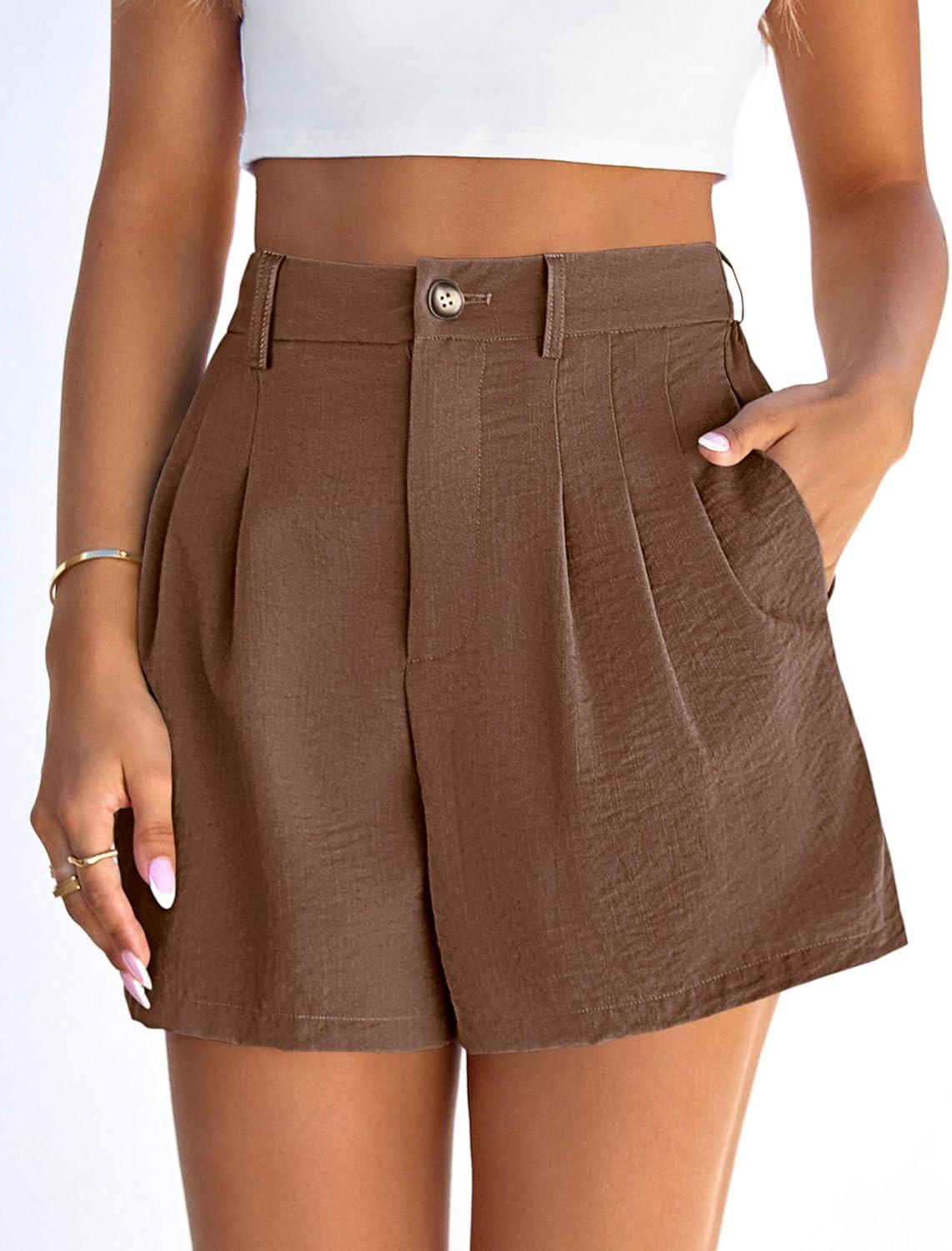 PRETTYGARDEN Womens Shorts Casual 2026 Summer Elastic High Waist Zipper Button Tailored Shorts Pleated Beach Vacation Outfits(Dark Brown)