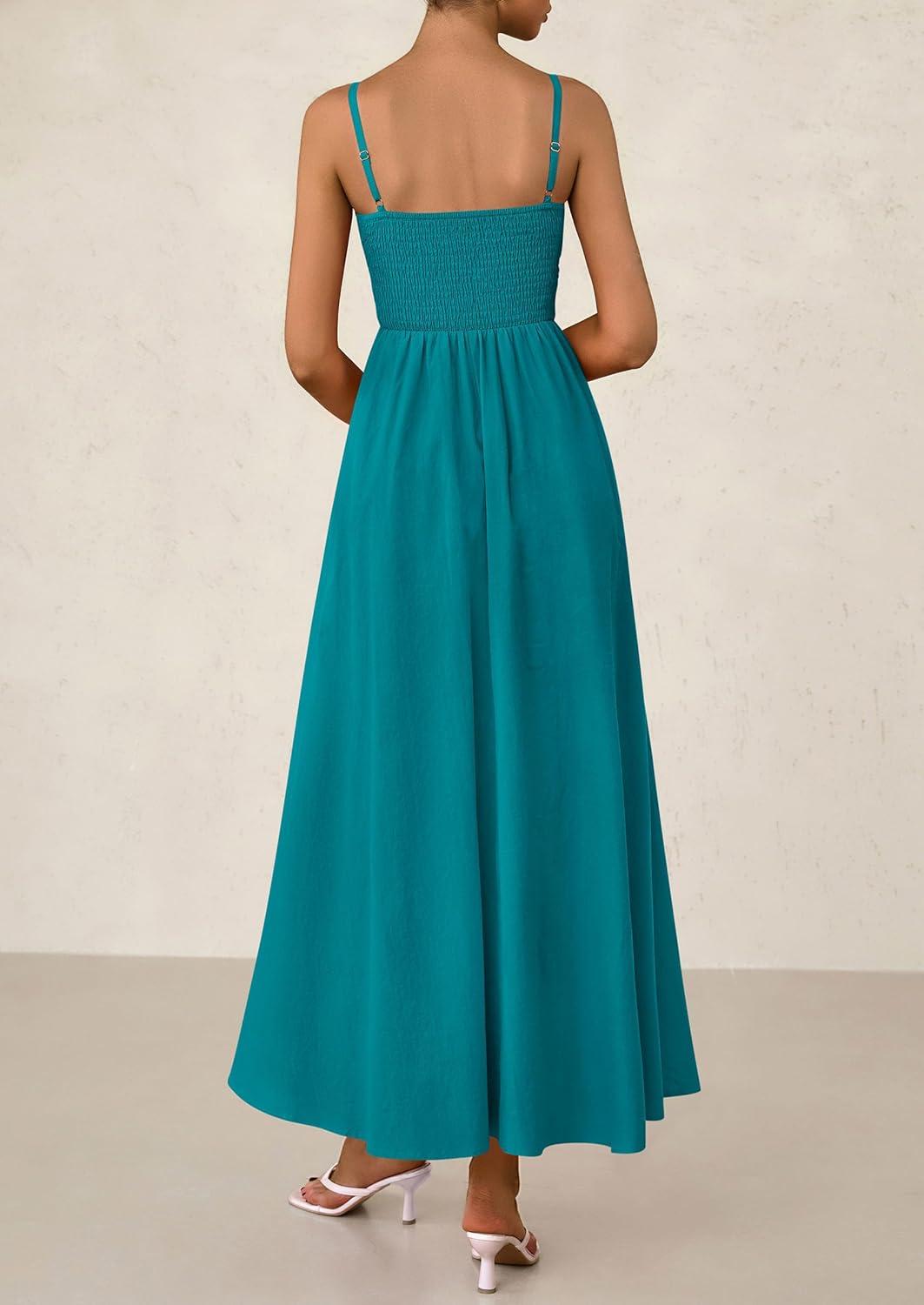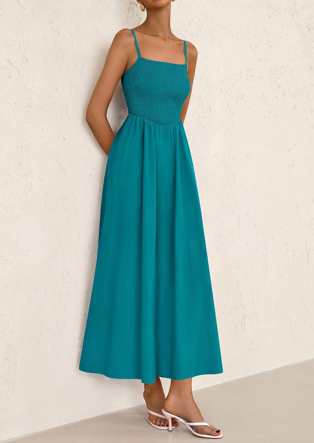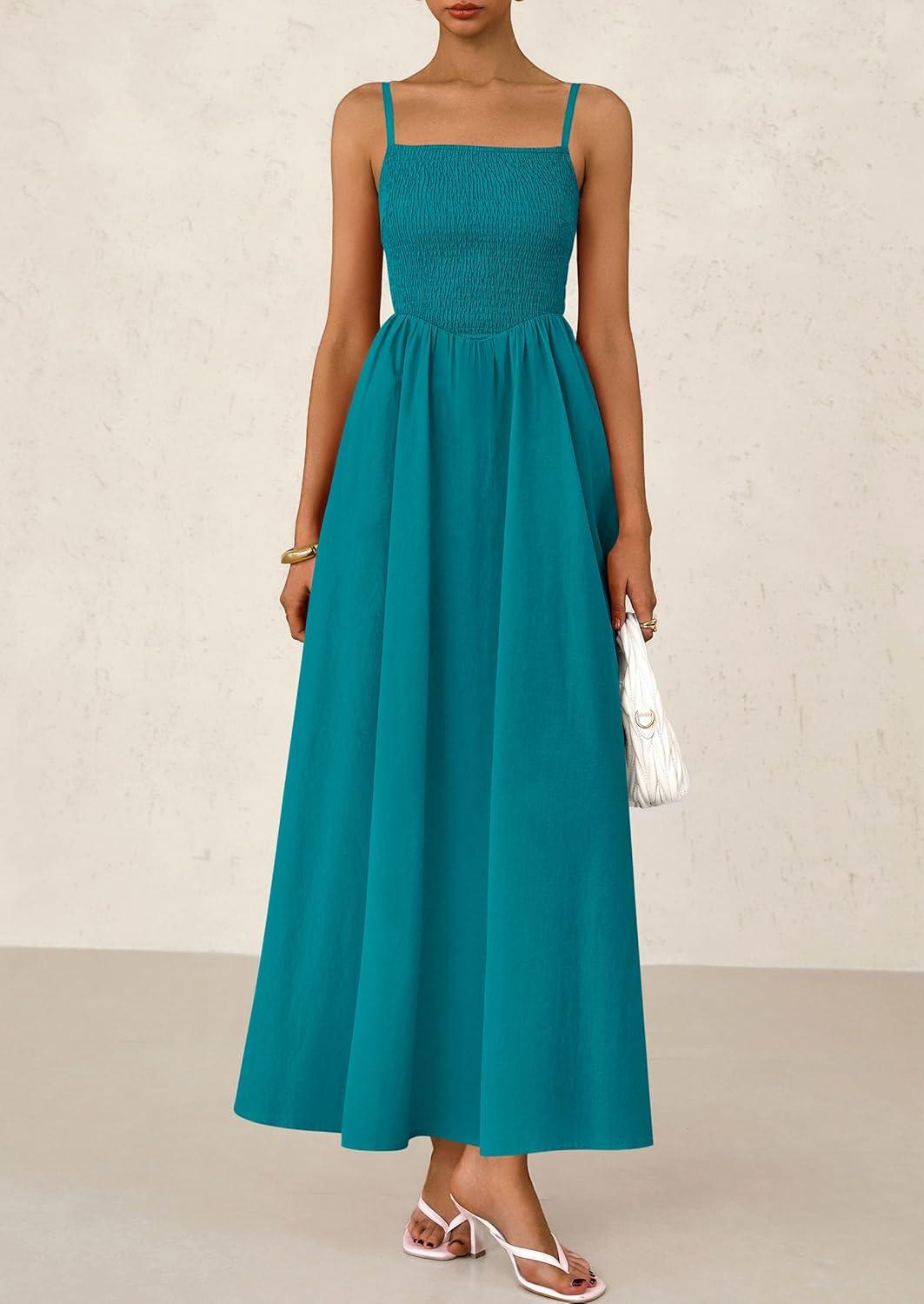 PRETTYGARDEN Women's Smocked Maxi Dresses 2025 Summer Beach Sundress Casual Spaghetti Strap Swing A Line Long Flowy Dress(Lake Blue)