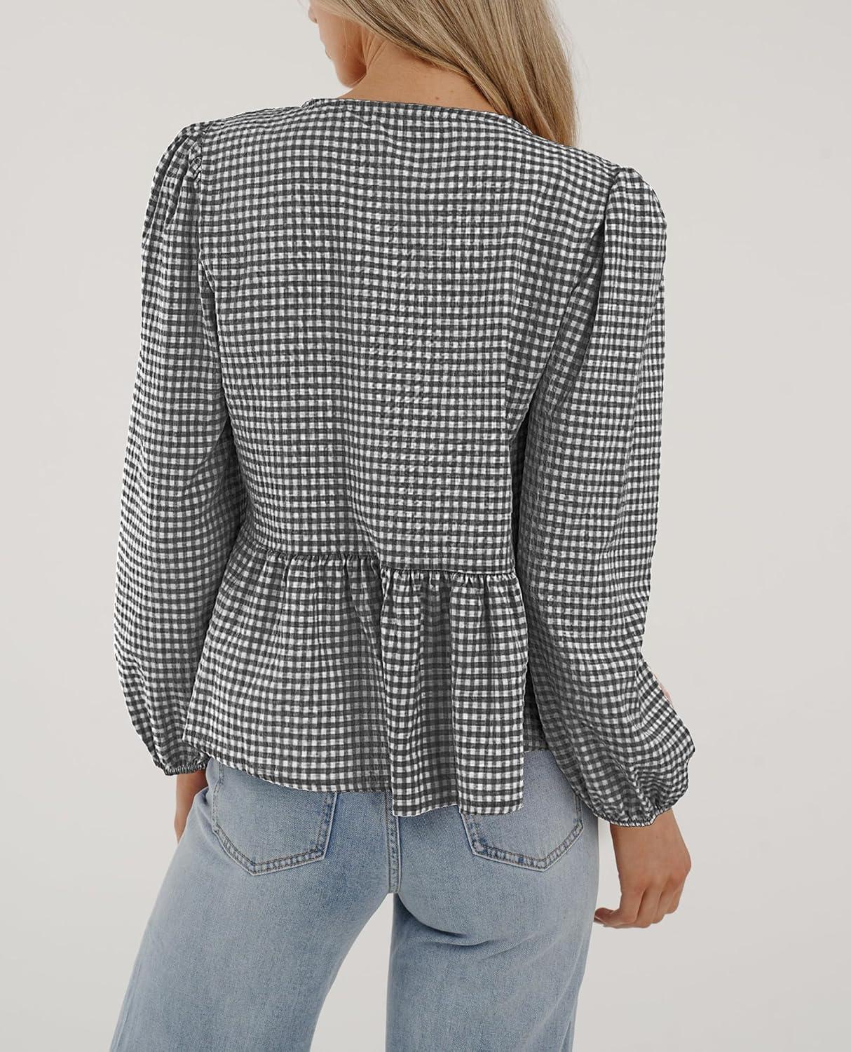 PRETTYGARDEN Women’s Spring Fall Babydoll Peplum Blouse Shirt Puff Long Sleeve Bow Tie Front Trendy Cute Y2K Going Out Tops(Plaid Black)