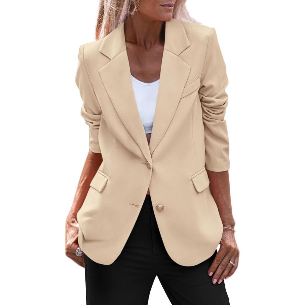 PRETTYGARDEN Women’s Spring Fall Business Casual Blazers Long Sleeve Notch Lapel Trendy Work Office Blazer Jackets Outerwear(Beige)